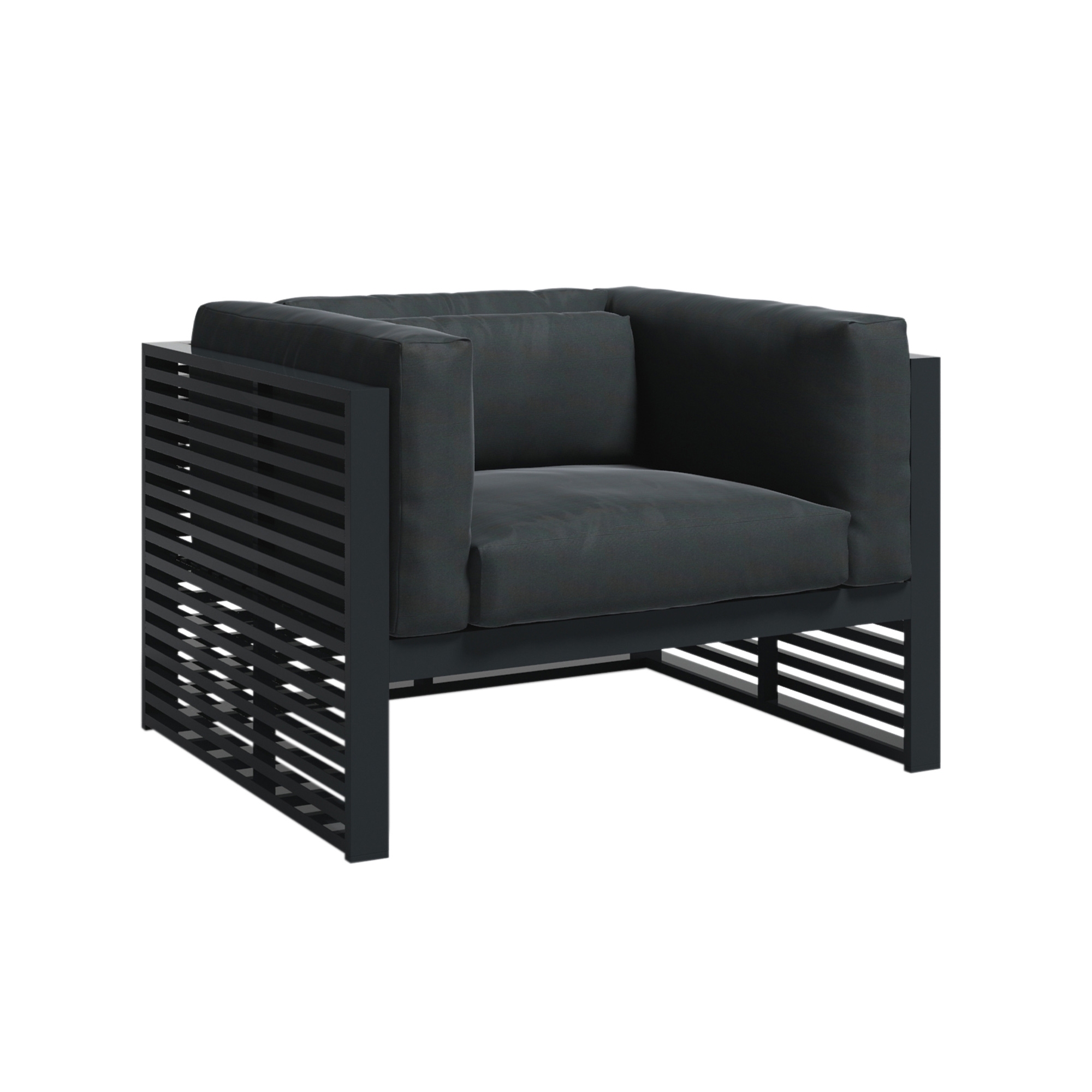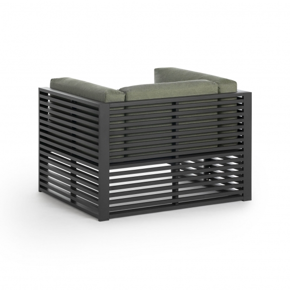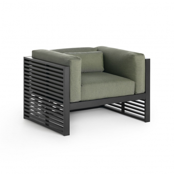 DNA outdoor lounge armchair made with anodized aluminum structure, padding in polyurethane foam covered in water-repellent fabric. Available in a wide range of color combinations, the DNA outdoor lounge chair is designed to accompany you for a long time in your outdoor environments. Comfortable and with a minimalist aesthetic, the ergonomics of the DNA armchair will offer you unparalleled moments of relaxation, and its sober and linear design will adapt to any style and context. Designed by José A. Gandía-Blasco Canales for Gandia Blasco.