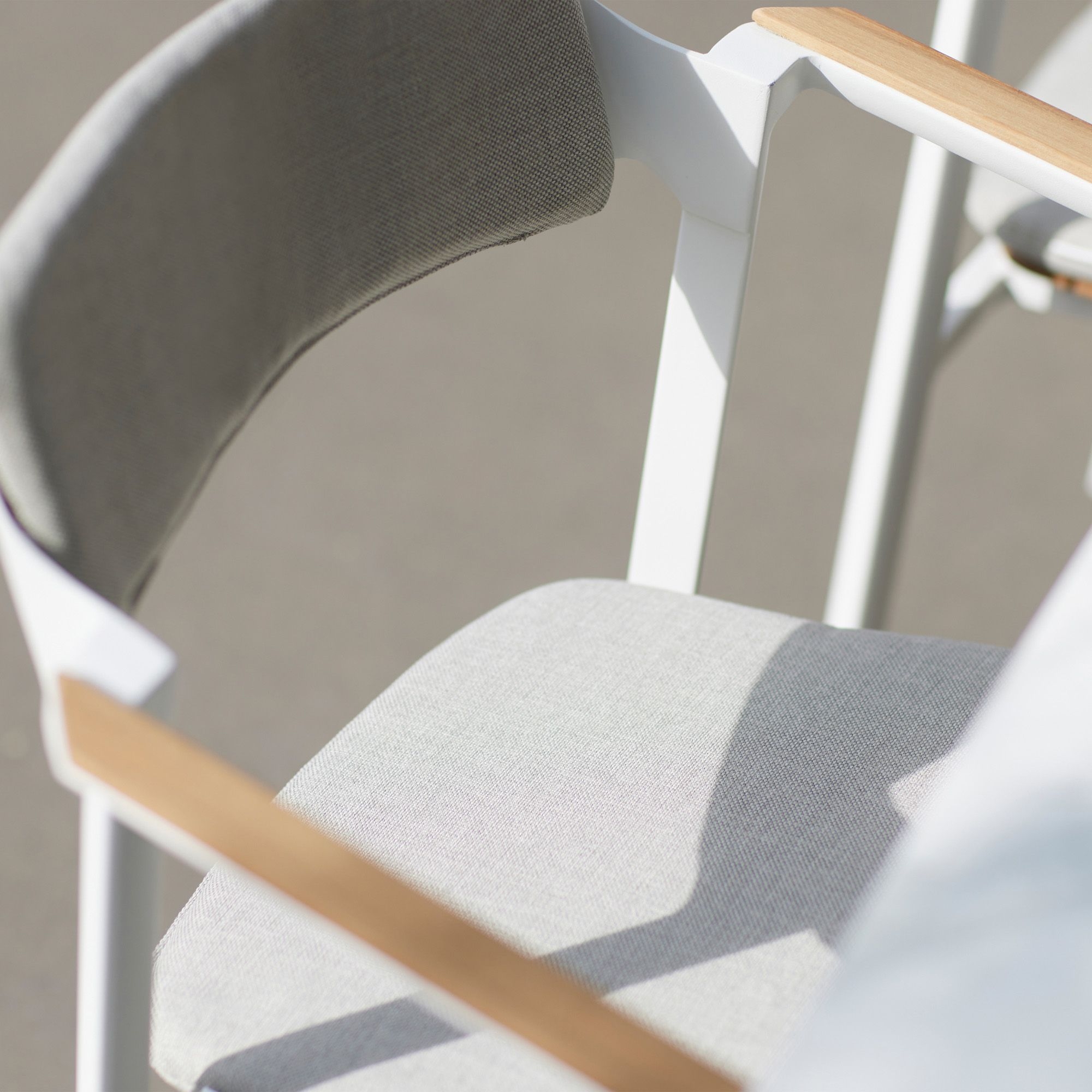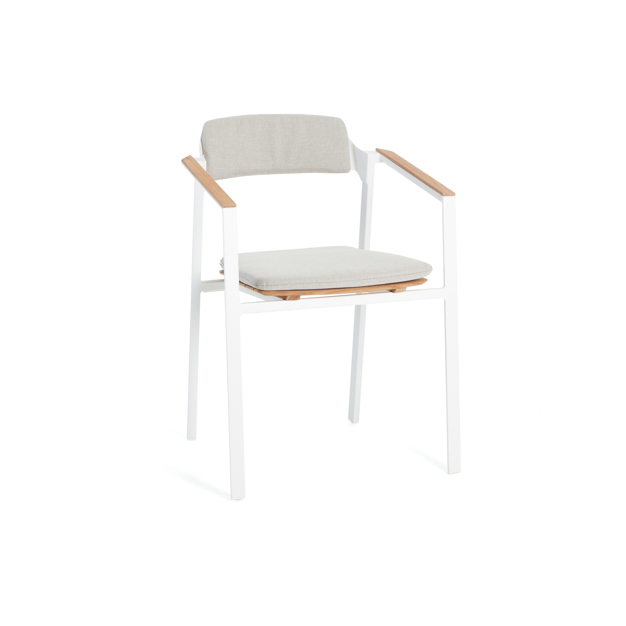 The Diphano Icon dining armchair has been meticulously crafted with the highest quality materials such as aluminum, which provides a robust and lightweight structure that is easy to move, and the prized Teak wood, which keeps the chair beautiful, elegant, and resistant to various climate changes like rain, UV rays, or humidity. This combination of aluminum and Teak gives the dining armchair a warm and natural feel and can be paired with dining tables featuring a Teak top. Available in four splendid colors, the outdoor Icon dining armchair is designed to complete any outdoor space, whether a garden with a pool or a modern-style terrace; Icon perfectly matches all styles and decors. Every aspect of this outdoor dining armchair has been meticulously considered, from the ergonomics of the backrest that supports a relaxed posture to the armrests that provide stability and additional comfort. Diphano's Icon is perfect for reading a book, dining with friends and family, or peacefully enjoying the sounds of nature. The Icon dining armchair is the perfect blend of functionality and aesthetics.
