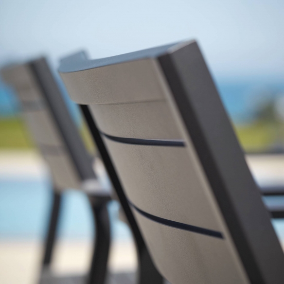 The Metris dining armchair by Diphano has been designed with high-quality aluminum and embodies a design that combines modernity, sophistication, and functionality. Available in four stunning colors and combinations, this outdoor dining chair features clean, contemporary lines and fits seamlessly into various environments, from residential spaces like traditional and classic gardens or terraces to modern and elegant settings such as hotels or restaurants. The seat and backrest warmly welcome guests, providing ergonomic support for extended relaxation moments. Additionally, these dining chairs are easily stackable, making space not an issue—perfect for hotels, restaurants, and various pubs. The Metris dining armchair is the perfect choice for those in need of timeless style and unmatched comfort, whether enjoying a book, a chat with friends, or simply the beauty of nature.