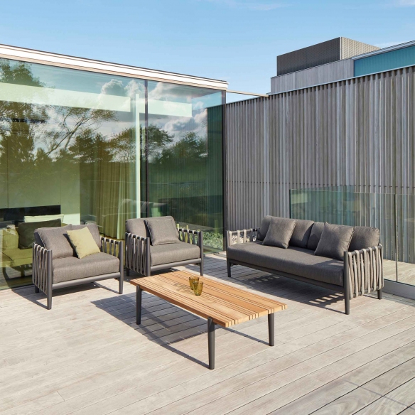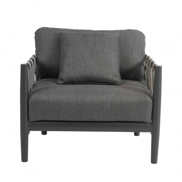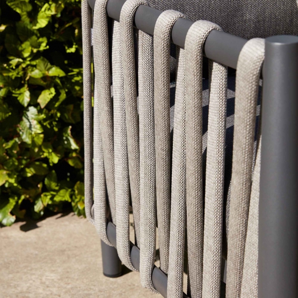 The Switch Rope lounge chair, with integrated cushions, is a jewel of comfort crafted from the highest quality materials such as aluminum, fabric, and rope. Its aluminum structure is robust yet lightweight, ensuring long-lasting durability for the armchair and easy maintenance. Equipped with extraordinarily soft cushions, as soft as clouds, the Switch Rope lounge chair brings the coziness of your home's interior to the outside. The thick outdoor ropes draw attention, making it the undisputed star of the evening. Switch Rope invites all your family and friends to enjoy moments of well-being. Furthermore, the Switch Rope lounge chair beautifies any outdoor or indoor space thanks to its unmatched style. Whether placed on a shaded terrace, in a garden, or within an indoor living area, Switch Rope will be perfect, becoming an irresistible invitation to moments of serenity and togetherness. The Switch Rope lounge chair with integrated cushions transforms the atmosphere into one that is warm and welcoming, capable of creating oases of pure relaxation and well-being.