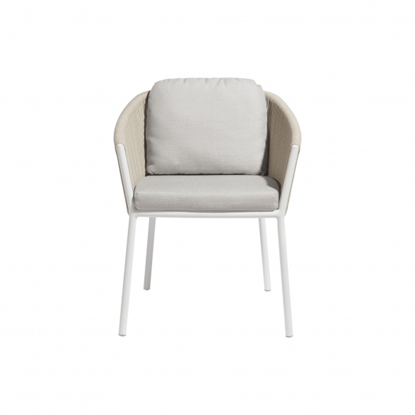 The Omer dining armchair, with integrated cushions, boasts a robust aluminum structure that promises durability and easy maintenance. This outdoor dining armchair is available in two beautiful colors, capable of seamlessly integrating into any setting, from the classic terrace to the modern poolside garden. The ultra-soft cushions are made from high-quality fabric, inviting relaxation and comfort. The Omer dining armchair is perfect for turning your kitchen or garden into a veritable art gallery. Thanks to its special and irresistible design, Omer is an ideal choice for those seeking style, comfort, and functionality in a single item. The Omer dining armchair features a simple and sophisticated design and is perfect for both indoor and outdoor use, thanks to its timeless durability. This armchair is distinctive for its rope finish, which creates an intense and elegant look. Don’t miss out on this gem; create your own oasis of relaxation with the Omer dining armchair with integrated cushions.