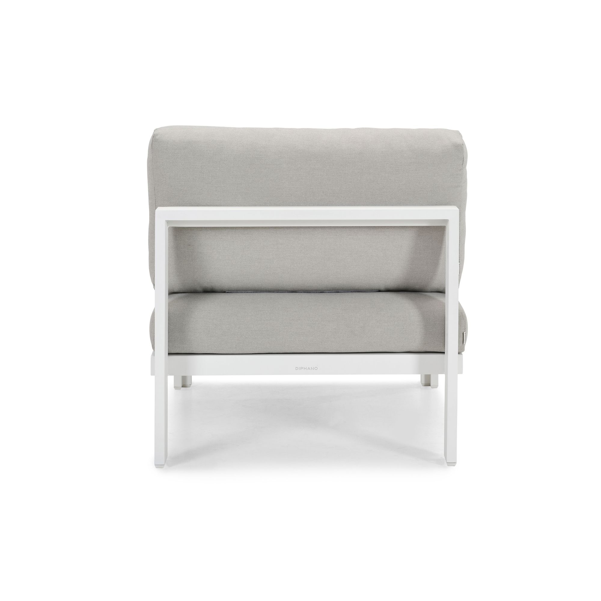 The Cubic middle seat, with integrated cushions, is a marvelous masterpiece created by Diphano. It features a sturdy aluminum frame and high-quality fabric cushions that can withstand various weather conditions, from intense sunlight to incessant rain. Cubic is customizable in six different colors, making it versatile and a perfect match for any style in your home. This outdoor middle seat stands out for its minimalist and modern design, making it an excellent choice for those looking to add a touch of contemporary elegance to their indoor or outdoor space. A unique feature of the Cubic seat is its Velcro fastening; this allows the cushions to stay in place while also being easily removable for maintenance and cleaning of the outdoor seat. Moreover, its versatility allows it to be placed in both outdoor areas such as a terrace or garden, and indoor spaces like a dining room or living room, thanks to its high-quality materials that can endure climate changes. Beyond its design and various features, Cubic is also committed to environmental sustainability, with eco-friendly materials that respect nature without compromising on aesthetics. Choose the Cubic small middle seat with integrated cushions, and you won't regret it.
