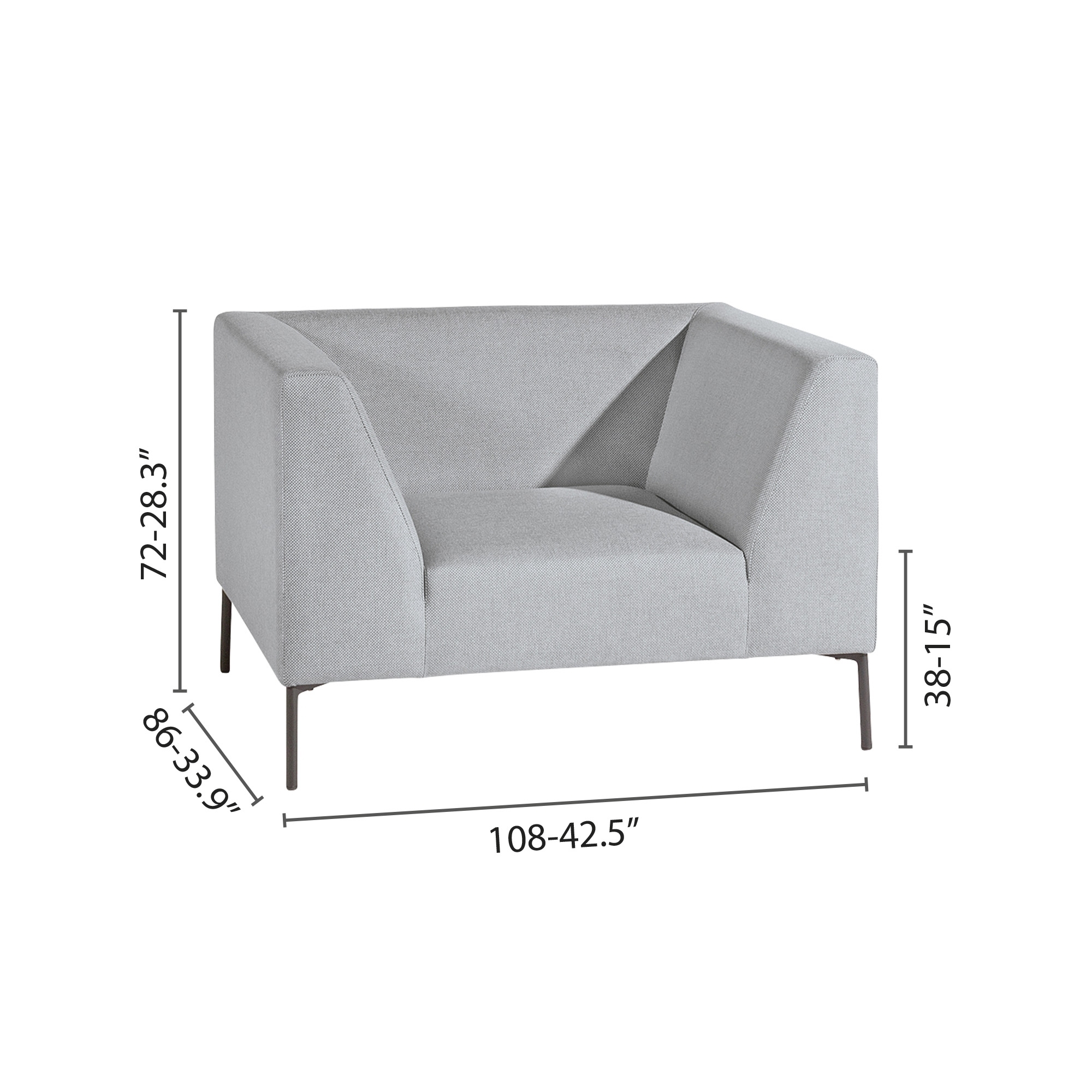 Dimensions: Length 108 cm, Depth 86 cm, Height 72 cm, Seat height 38 cm
