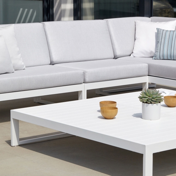 The Landscape Teak middle seat, with integrated cushions, is meticulously crafted with attention to detail and combines the sturdiness of its aluminum structure with the warm aesthetics of Teak wood that promises resistance to various climatic changes, making it perfect for outdoor use. Available in two distinct, wonderful combinations, the Landscape Teak middle seat perfectly balances natural elegance and comfort, perfect for those looking to enhance their spaces with a touch of everlasting elegance. Landscape Teak offers contemporary lines that render it unique and sophisticated, matching any decor style, from modern to traditional. With cushions made from soft and plush fabric, this seat is ideal for afternoons with family and friends. The Landscape Teak has a length of 80 centimeters, perfect for accommodating two people, encouraging moments of relaxation and conviviality outdoors with your soul mate. Its versatile design makes it suitable for any context, from a terrace with a sea view to a garden with a pool, or even a modern living room, where the Teak wood adds an element of naturalness and serenity. Choosing the Landscape Teak middle seat means opting for a solution that embodies well-being and style.