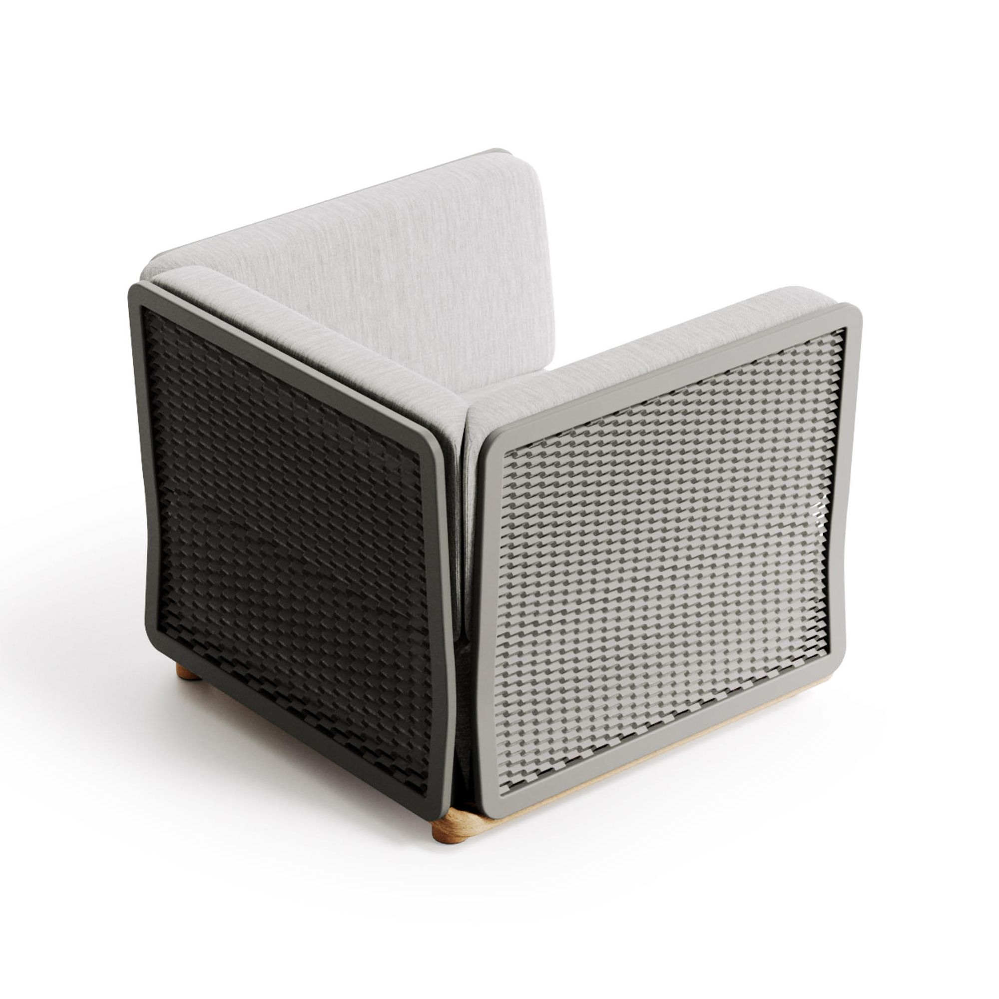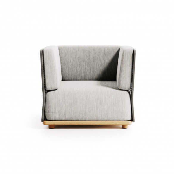 The Switch outdoor armchair, crafted with an aluminum structure, teak-tinted base, and cushions for the seat and backrest covered in outdoor fabric, represents the pinnacle of innovation and versatility in outdoor furniture design. Drawing inspiration from the simplest elements, this armchair has been created to encapsulate flexibility and creativity. Constructed with white aluminum sheeting that evolves into a unique texture, the Switch allows for the invention and customization of outdoor spaces to meet specific needs and to harmonize with the nature of the desired area. It is part of a broader range that includes modular sofas, accessory elements dedicated to the lounge area, and innovative lighting solutions, thereby emphasizing the importance of functional but aesthetically compelling design. This collection, designed with an eye for versatility and customization, transforms any outdoor area into a unique and personalized environment, capable of reflecting the style and requirements of those who live it. Ideal for those who love to reinvent and adapt their outdoor space for different occasions, the Switch outdoor armchair stands out for its ability to create, through simplicity and innovation, outdoor settings of great impact and comfort. Choosing the Switch armchair means opting for cutting-edge design that marries functionality, aesthetics, and a strong focus on the customization of outdoor space. Designed by Atmosphera Creative Lab.