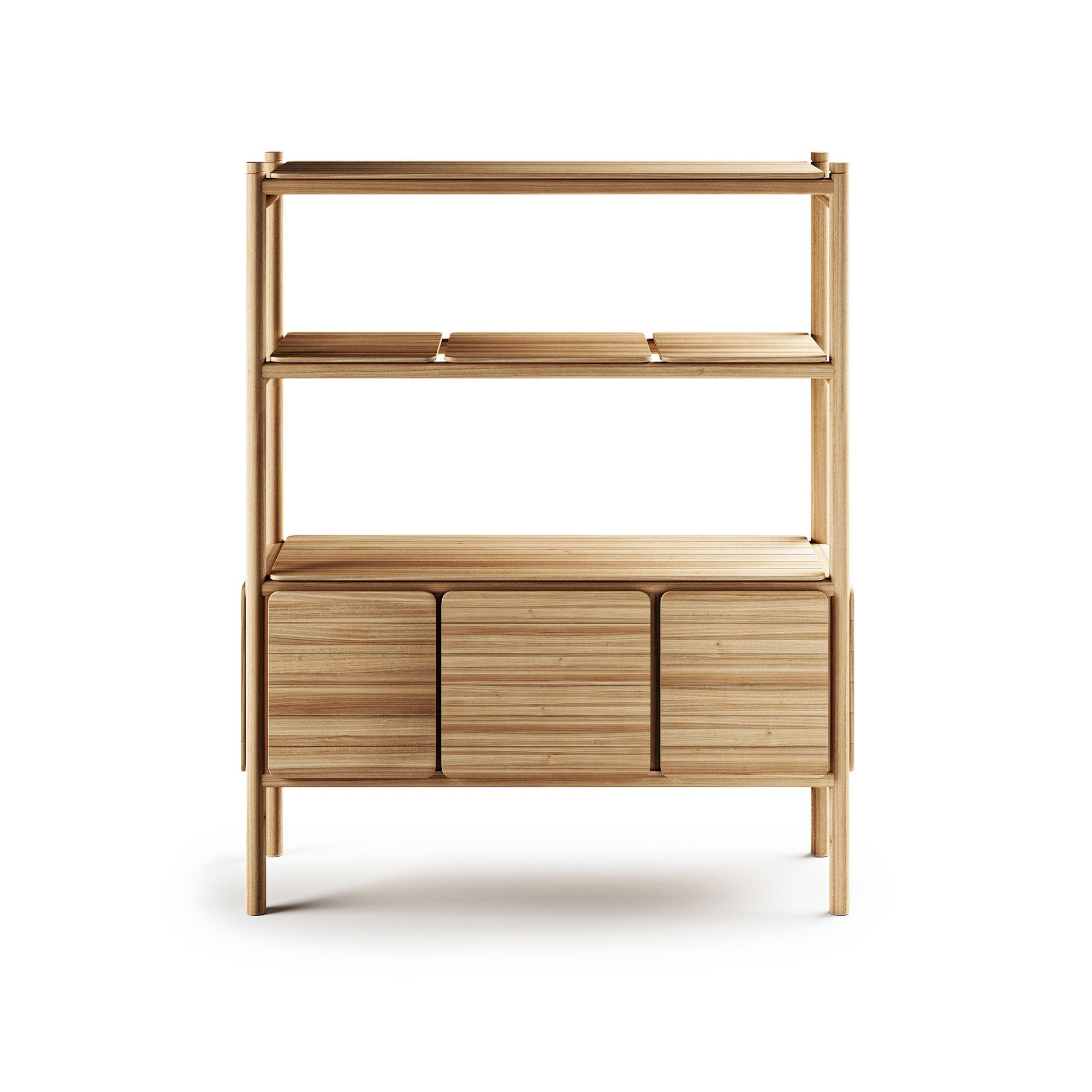 The Apache outdoor storage console made of natural teak stands out as a distinctive piece of outdoor furniture, highlighted by its cylindrical structure, delicately carved with a groove serving as the identifying mark of the entire Apache collection, making it a true style statement in the context of exterior design. Designed with both functionality and aesthetics in mind, the storage console offers an ideal solution for neatly storing and protecting outdoor items against the elements, thanks to its durable doors and openings that ensure both easy access and secure closure. This combination not only safeguards the interior elements but also ensures unparalleled durability and reliability, perfectly adapting to any outdoor setting, from the terrace to the poolside, without compromising style. For those seeking an elegant and practical solution to enhance and organize outdoor space, the Apache outdoor storage console emerges as the foremost choice, offering a unique blend of sophisticated design and unmatched functionality. Designed by Atmosphera Creative Lab.