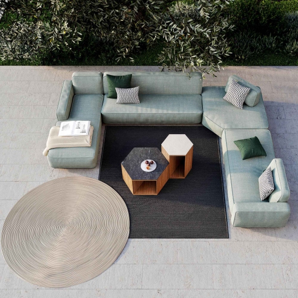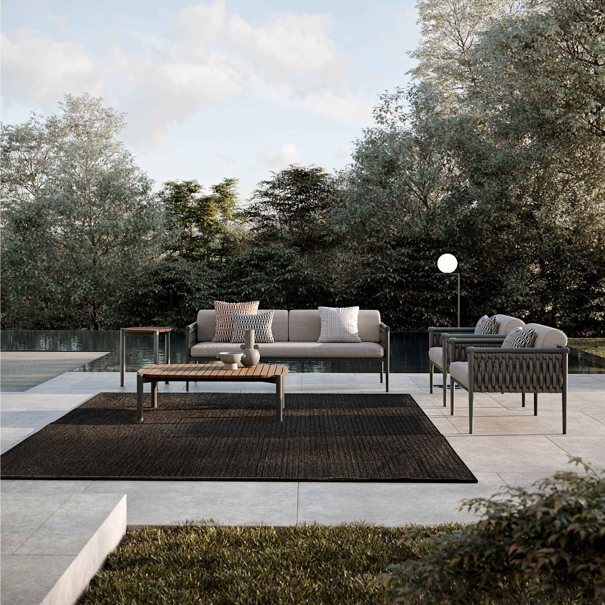 The Raffaello outdoor rug, measuring 300x200 cm and made entirely of polypropylene, is available in 3 colors. It embodies the perfect blend of durability and style, making it the ideal choice for enhancing open spaces such as terraces, balconies, or gardens. With a composition of 100% polypropylene, this rug is designed to withstand outdoor conditions while maintaining its aesthetic appearance over time. For the maintenance of the Raffaello rug, it is recommended to avoid the use of brushes or abrasive tools that could damage the surface, as well as the use of bleach that could alter its color. Any threads that protrude from the fabric should not be pulled, but simply cut with a pair of scissors to preserve the rug's integrity and appearance. The Raffaello outdoor rug is the perfect addition to any outdoor decor: it adds a touch of elegance to flooring and relaxation areas, coupled with easy management and cleaning. Opting for the Raffaello rug means choosing a product designed to last and withstand weather conditions, ensuring the beauty and welcoming atmosphere of your outdoor space remain vibrant. Designed by Atmosphera Creative Lab.