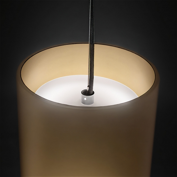 Sesè suspension lamp made with painted aluminum structure. Available in 3 elegant color finishes, the Sesè suspension lamp is a lamp with a simple and original design, which stands out for its metal cylinder, which projects a bidirectional light. The lamp has two LED boards inside, which emit light directed downwards and upwards. The lamp creates a dynamic and functional light effect, which illuminates the space with an intense and comfortable light. Designed by Carlo Guglielmi for Firmamento Milano.