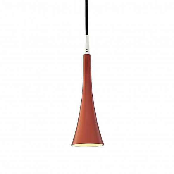 Trumpet suspension lamp made of aluminium. Available in 3 color finishes, the Trumpet pendant lamp is inspired by the acoustic signals of carriages, ancient means of transport pulled by horses. The transparent glass lampshade allows a glimpse of the internal structure in glazed ceramic, available in different finishes. Trumpet is a versatile and customizable lamp, which can be enriched with a series of objects that can be added to the suspension, such as small mirrors, magnets, hooks and pieces of paper. Designed by Carlo Guglielmi for Firmamento Milano.