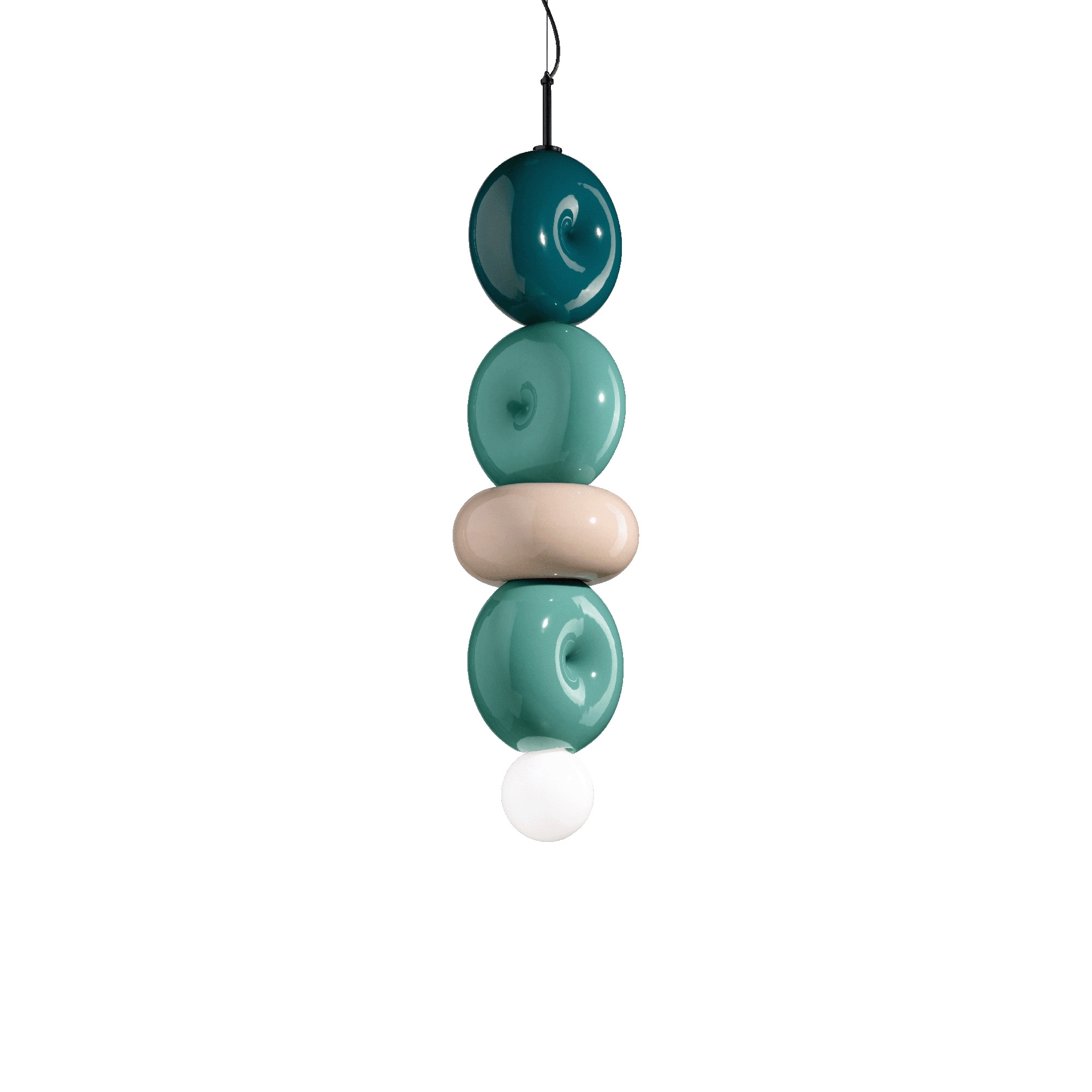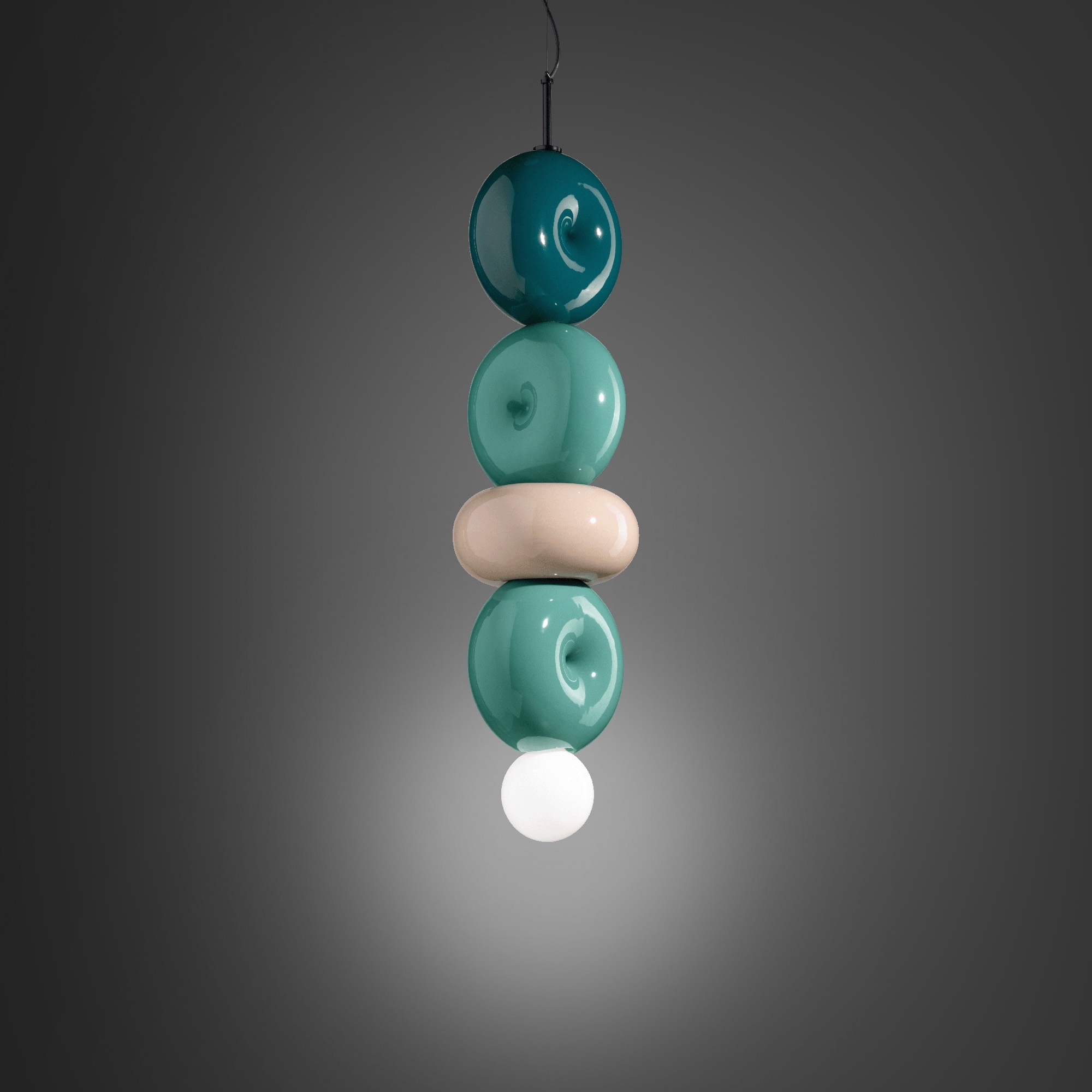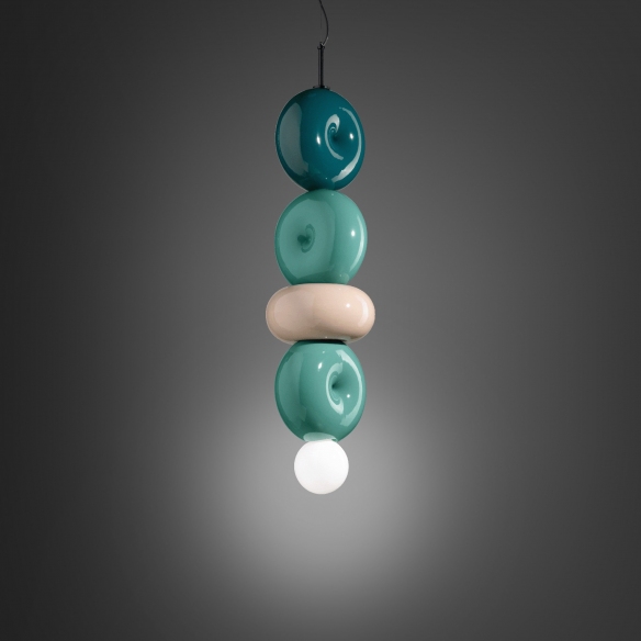 C2764 4-element suspension lamp made with ceramic body and opal glass diffuser. Belonging to the Bumbum collection, the C2764 suspension lamp reflects a unique and lively design that captures attention. Built with high-quality materials, the lamp ensures uniform light and impressive durability. Its smooth exterior and geometrically intriguing shape create a captivating play of light and shadow. With its contemporary design and casual elegance, the C2764 fits perfectly into a variety of environments, giving interiors an unexpected artistic accent. Made by Ferroluce.