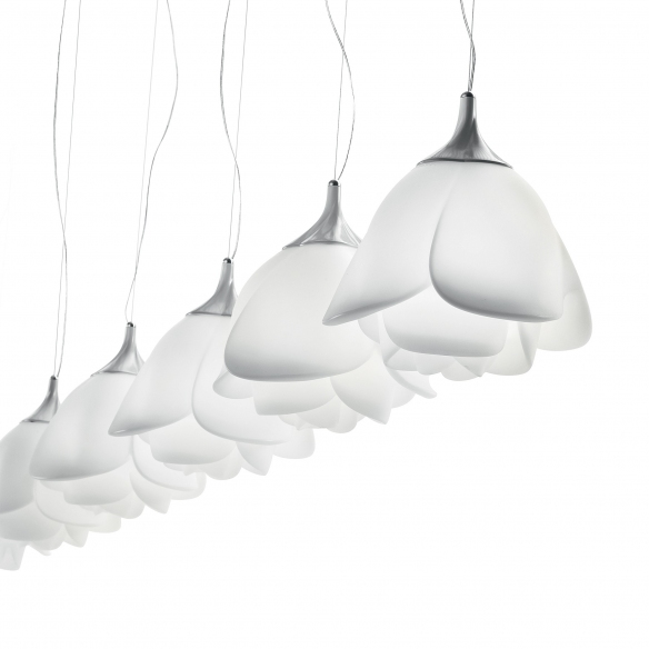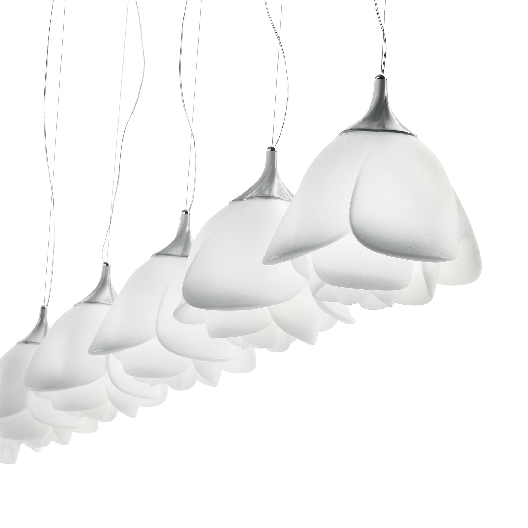 Baby Love rechargeable suspension lamp made of robust polyethylene (Poleasy). Characterized by an exclusive rose-shaped design, the Baby Love suspension lamp is perfectly in tune with a pop and bold style. Baby Love skilfully illuminates and personalizes environments with a youthful target, trendy venues and settings with a strong visual impact. Light source KIT E27 MAX 32W (bulb not included). Designed by MoreDesign for My Your.