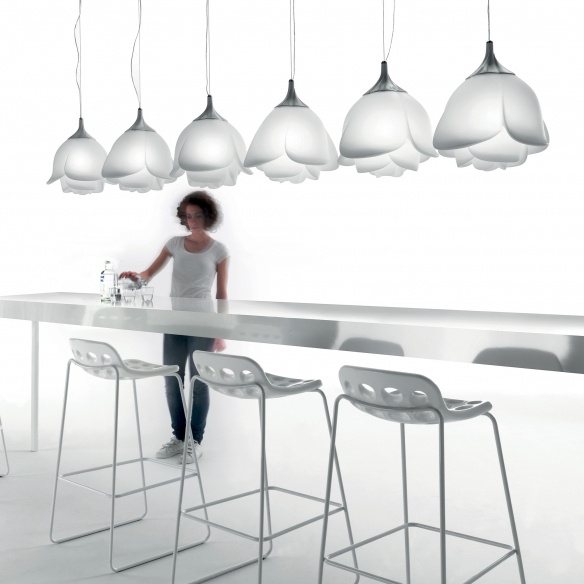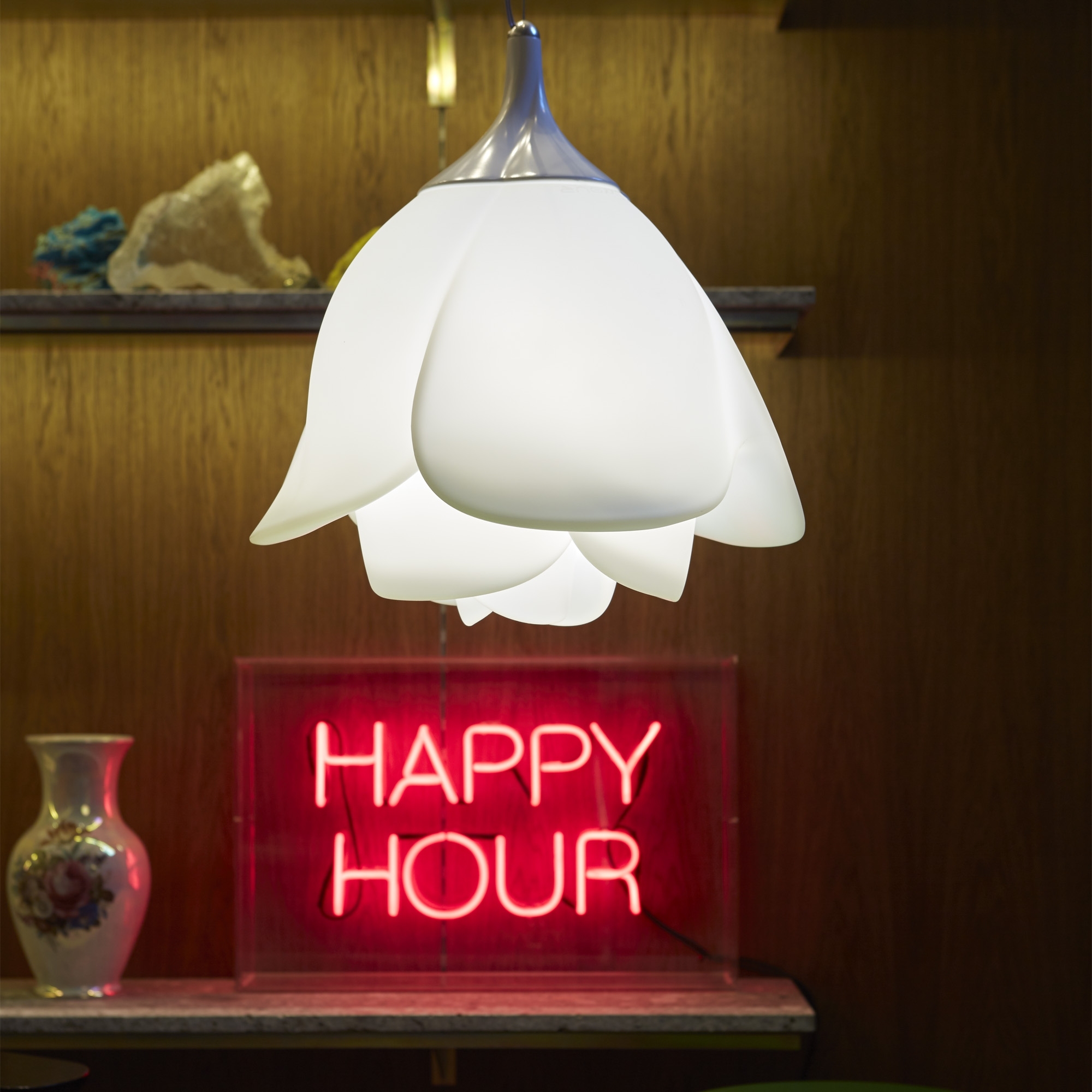 Baby Love collection by My Your features a stylized rose design that creates a variety of exceptional lamps. A real trophy of the collection is the rechargeable Baby Love suspension lamp, which with its unique shape and pop character celebrates a young and lively aesthetic. The Baby Love collection offers a range of options that includes pendant lamp, floor lamps available in two different heights. These bold and distinctive lamps can transform into real focal points within any environment, be it a trendy place or a domestic environment. Another distinctive element of the Baby Love collection is its waterproof table version. This lamp, thanks to its versatility, can be used both indoors and outdoors. With an RGBW light source and battery power, the waterproof Baby Love is perfect for creating an evocative atmosphere in any situation, evoking an aura of undeniable elegance. When placed on the surface of the water, it floats, adding a touch of unique charm. Thanks to the great variety of models, Baby Love is able to adapt both to elegant contexts and to environments with a more youthful target. Its various shapes and innovative functions make it ideal for trendy venues and hotels and for settings with a strong visual impact. The entire Baby Love collection combines a unique and futuristic design with a pop and contemporary approach, offering original lighting solutions for many contexts.