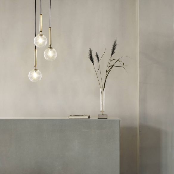 Miira 3 pendant lamp, expertly crafted from metal by skilled artisans, is available in various finishes. It embodies beauty and simplicity, seamlessly blending into any environment, from the warm spaces of your home to the minimalist design of your office. The three hand-blown glass globes emit a soft light that creates a warm and romantic atmosphere. The selection of high-quality materials and the use of advanced LED technology reflect Nuura's commitment to sustainability, sophistication, and energy efficiency. This fusion of LED technology with timeless aesthetics exemplifies how modern design can enhance everyday living. Designed by Sofie Refer for Nuura.