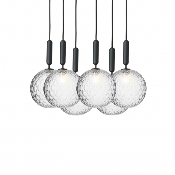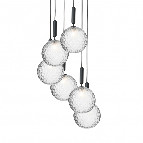 The Miira 6 large pendant lamp, crafted in metal, embodies the perfect blend of technological innovation and artisanal expertise. Available in four different combinations, the Miira 6 (large) is perfect for any setting, from the living room of your home to the contemporary design of your office. Equipped with advanced LED technology, this pendant lamp not only efficiently illuminates every corner of the room but also contributes to environmental sustainability by reducing energy consumption and ensuring maximum durability. The globes, made from hand-blown glass and crafted with extreme care and precision, emit a warm and enveloping light, capable of transforming the room into a comfortable space. Created by Sofie Refer for Nuura.