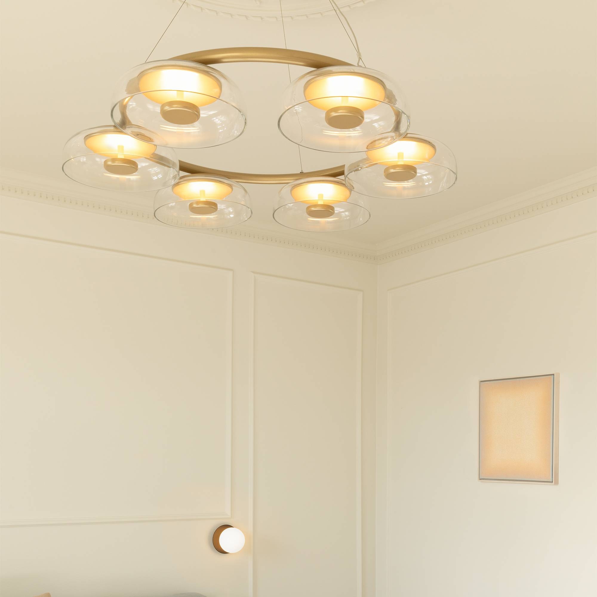 The Blossi 6 pendant lamp, crafted from metal, adds a touch of elegance and brightness to any space. Designed to emit a soft and warm light, the Blossi 6 lamp incorporates LED technology, ensuring energy efficiency and high-quality lighting. This makes it perfect for creating harmonious atmospheres in both private residences and commercial spaces. The lamp was designed by Sofie Refer for Nuura.