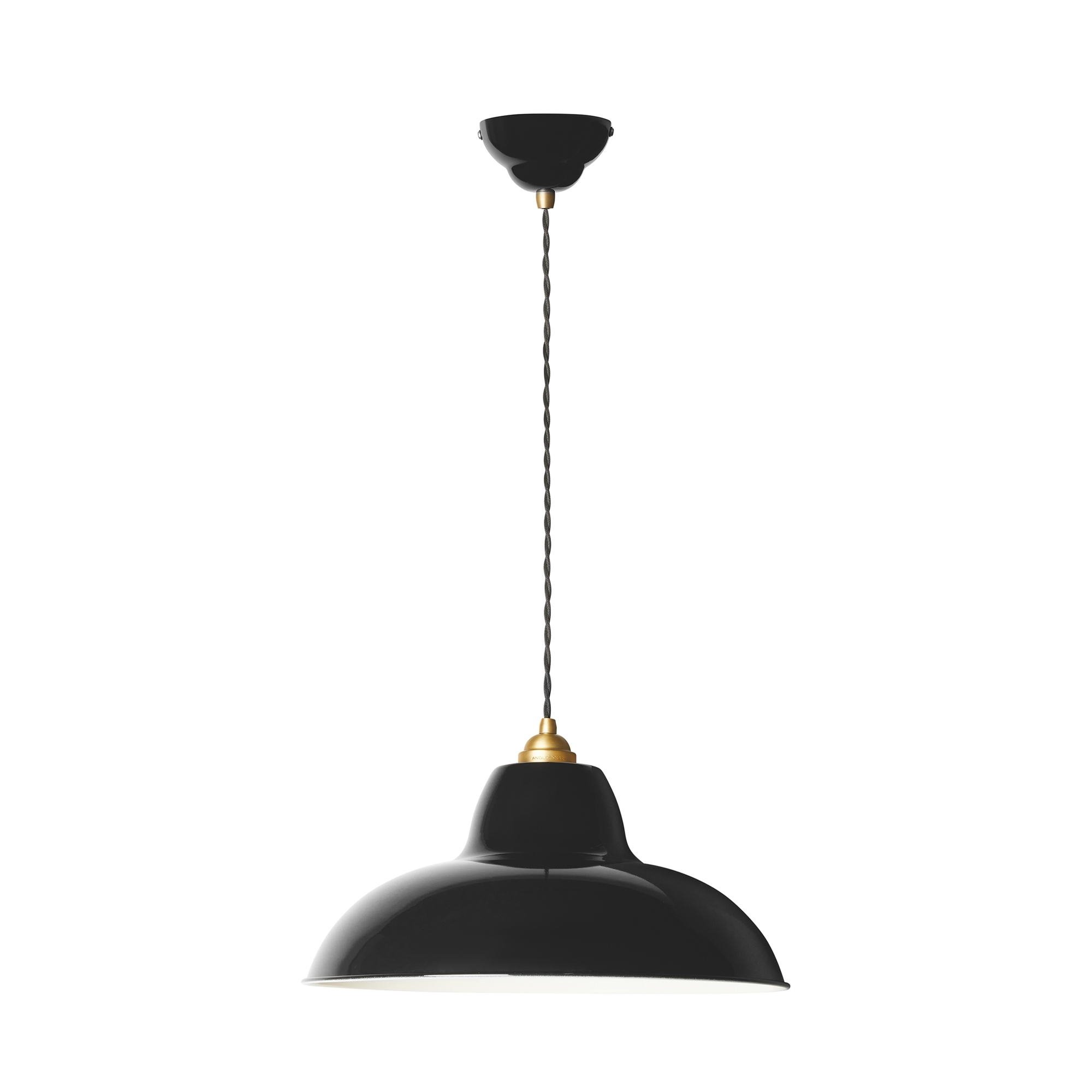 Materials: Gloss paint finish, Steel shade, Brass shade cap and fittings, Twisted woven fabric cable