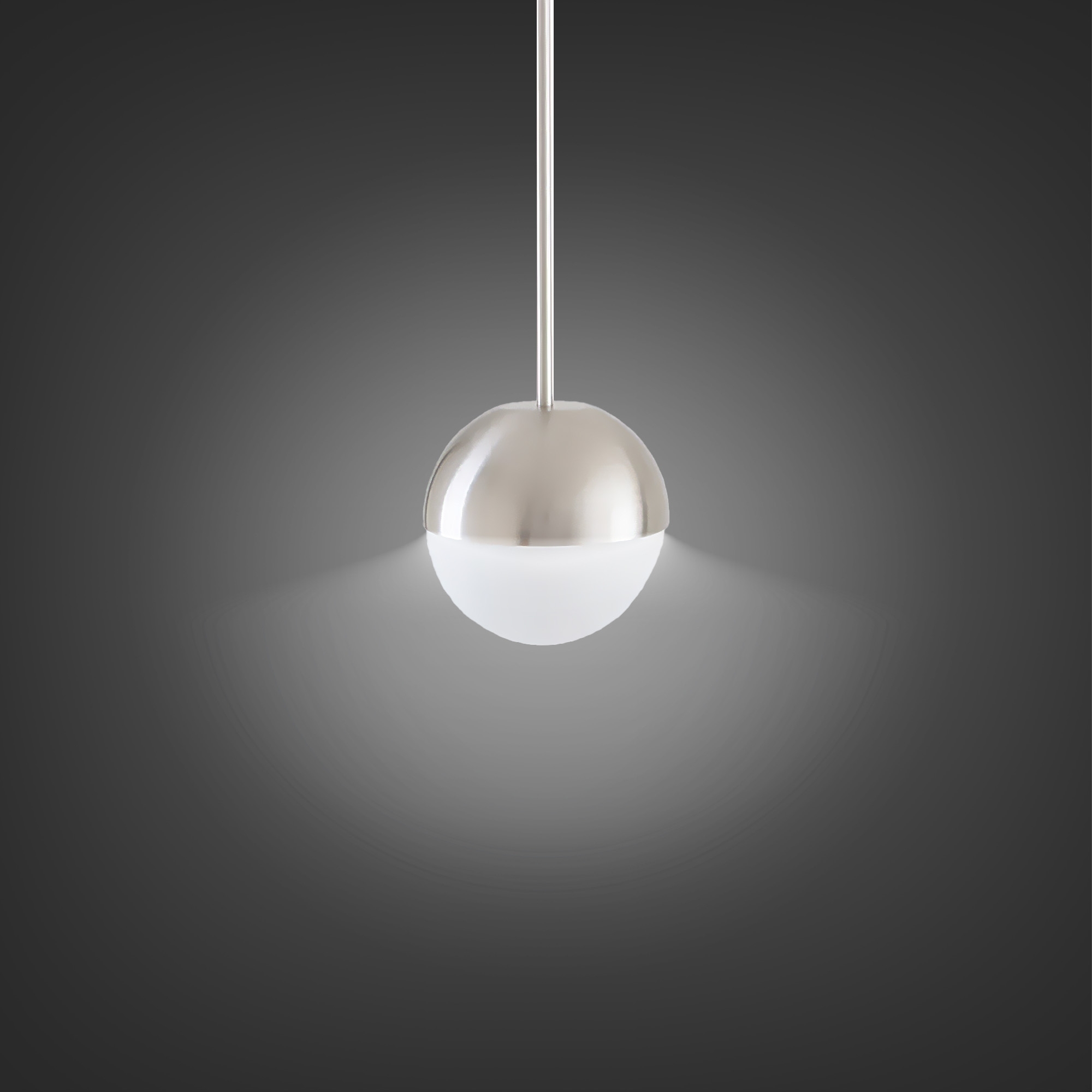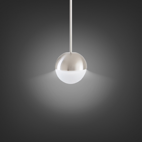 The Pallina pendant lamp is crafted with a galvanized metal frame featuring a double interchangeable rod, a diffuser in opaline frosted blown glass, and a ceiling rose in painted polycarbonate. Available in 4 stunning colors, the Pallina pendant lamp represents the synergy between the perfect form of the sphere and the elegance of glass, resulting in the most essential item in the Fontana Arte catalog. Pallina, a true must-have, will find its rightful place in every corner of the home thanks to its universal shape and its warm, welcoming light. This piece brings a warm and inviting light to every room, telling the story of Italian design through its unique style. The essence of the perfection of glass and the sphere blend to offer a piece that is, without a doubt, a must-have for all who appreciate quality design. Designed by FontanaArte Design Lab.