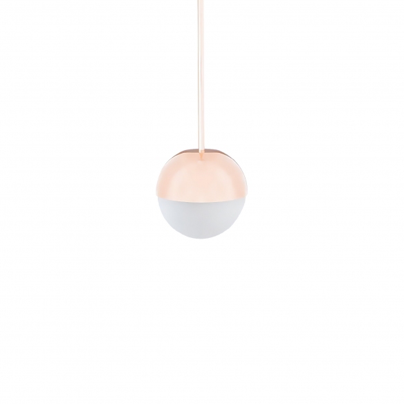 The Pallina pendant lamp is crafted with a galvanized metal frame featuring a double interchangeable rod, a diffuser in opaline frosted blown glass, and a ceiling rose in painted polycarbonate. Available in 4 stunning colors, the Pallina pendant lamp represents the synergy between the perfect form of the sphere and the elegance of glass, resulting in the most essential item in the Fontana Arte catalog. Pallina, a true must-have, will find its rightful place in every corner of the home thanks to its universal shape and its warm, welcoming light. This piece brings a warm and inviting light to every room, telling the story of Italian design through its unique style. The essence of the perfection of glass and the sphere blend to offer a piece that is, without a doubt, a must-have for all who appreciate quality design. Designed by FontanaArte Design Lab.