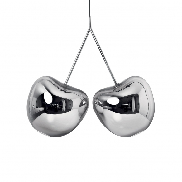 The Cherry Metal pendant lamp blinks at the concept of desire, crafted by Qeeboo entirely from recyclable polyethylene, a high-quality material that ensures longevity, durability, and versatility. This magnificent lamp boasts a sleek and unparalleled design, inspired by the iconic shape of two cherries with a metallic finish and available in two charming colors, making it easy to adapt to any setting and style of decor. Whether positioned within a contemporary living room or a minimalist lounge, the Cherry Metal pendant lamp will add a touch of glamour and originality. Its attractive, plump forms are an invitation to the seduction of interiors, and with its metallic finishes, Qeeboo's Cherry Metal represents a brilliant fusion of playful aesthetics and design sophistication. Designed by Nika Zupanc for Qeeboo.