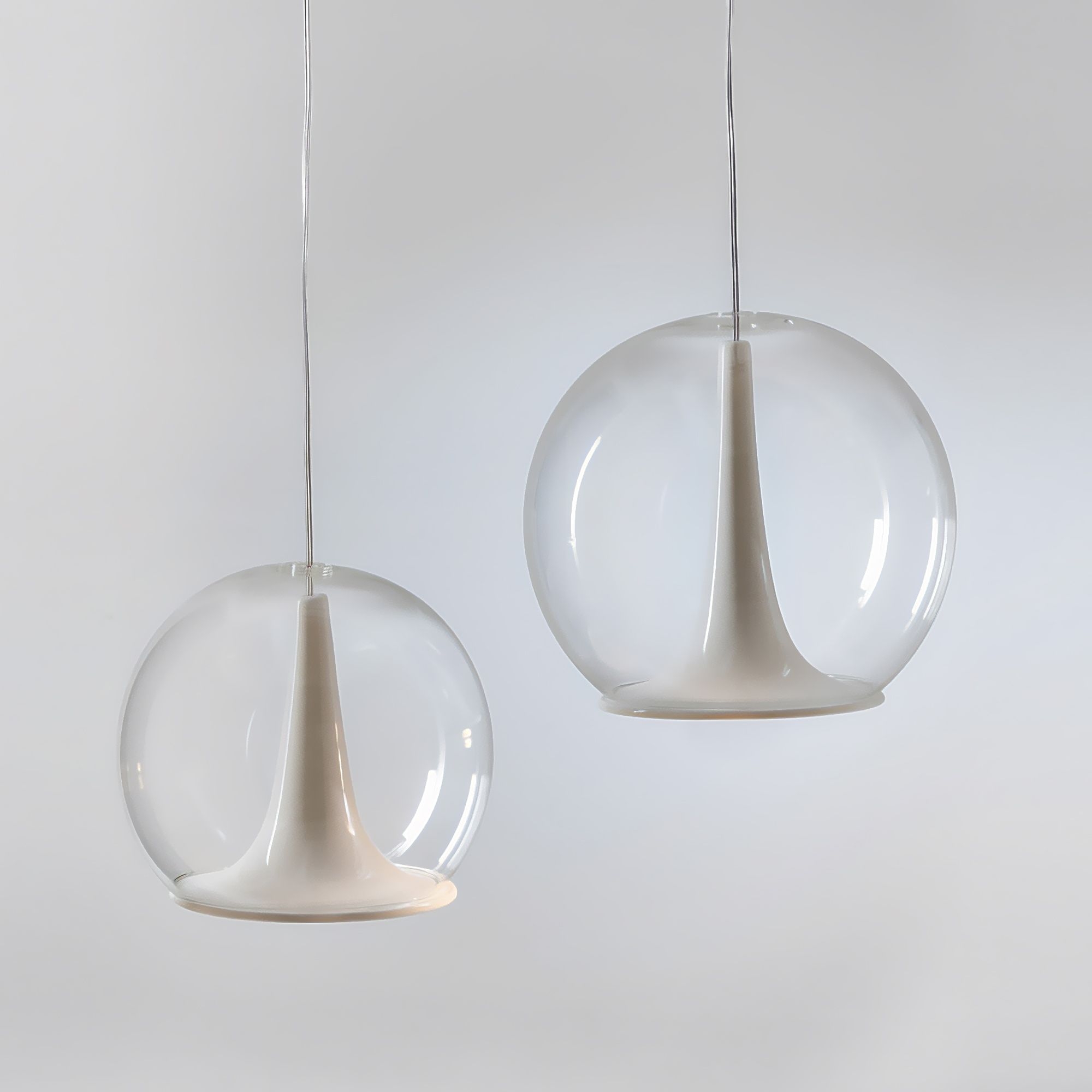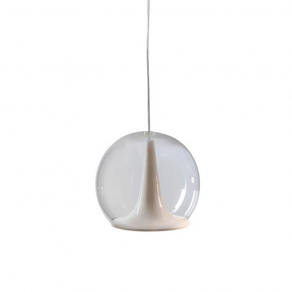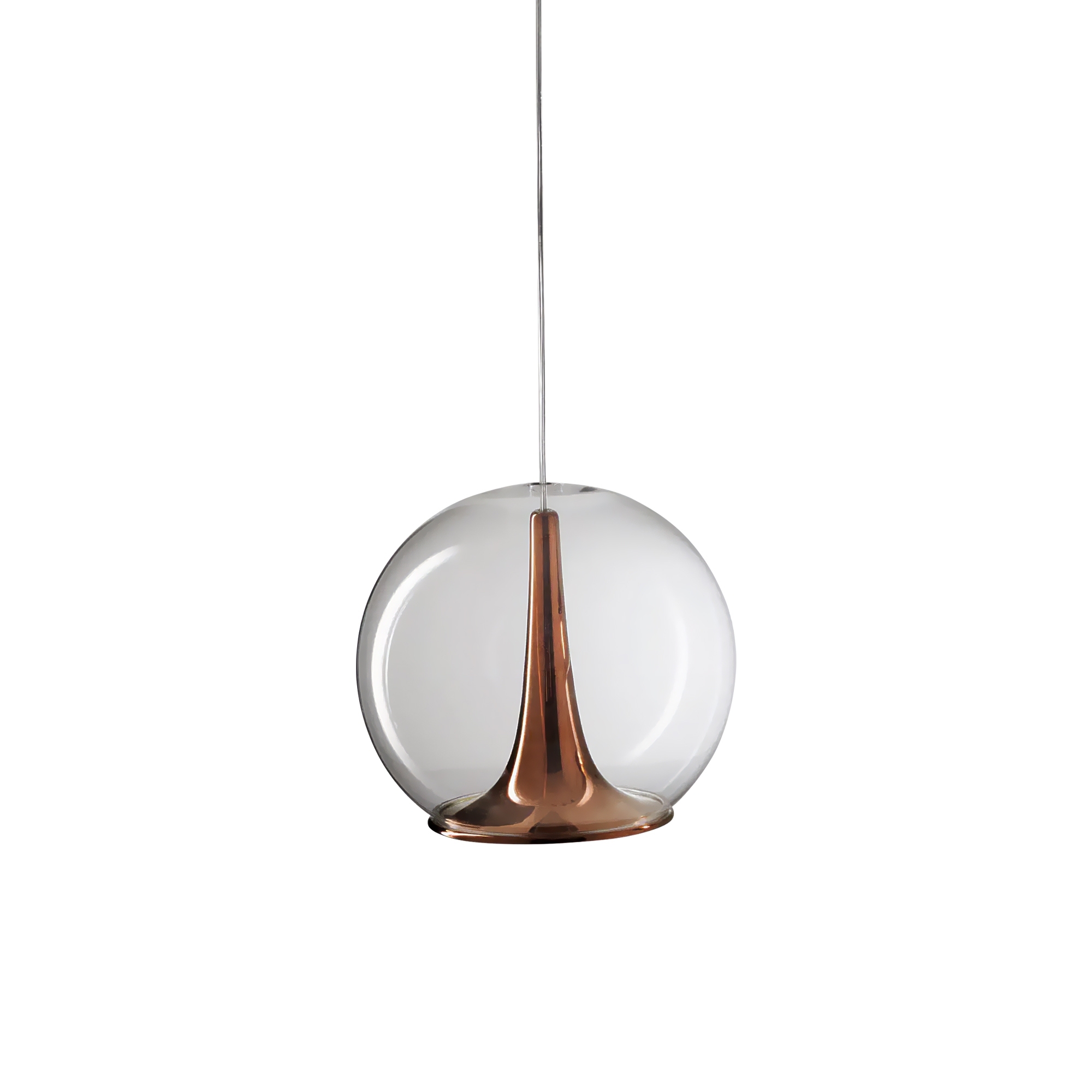 The Trumpet pendant lamp is a delightful decorative item created by Bosa, featuring a glass lampshade and an internal structure made of glazed ceramic, materials that ensure considerable longevity and sophistication. This pendant lamp has a ceramic structure that depicts an actual trumpet and is available in various finishes, sizes, and colors. With its elegant and minimalistic design, the Trumpet lamp harmoniously complements any setting and style of decor. Whether placed in a modern living room, a minimalist bedroom, or a lounge, the Trumpet adds liveliness and captivating design everywhere, catching the eye of guests. The design of the Trumpet penant lamp promotes the diffusion of warm and enveloping light, ideal for creating a unique and welcoming atmosphere in any space that requires a touch of elegance and style. The lamp can be installed individually for a clean and sophisticated look or in group configurations for a decorative and luminous effect of great emphasis. Designed by Matteo Zorzenoni for Bosa.