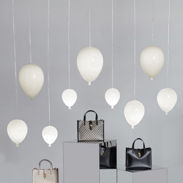 The Balloon pendant lamp is a stunning representation of an iconic balloon shape, created by Slide entirely in polyethylene, a 100% recyclable material that ensures durability and longevity. This fantastic pendant lamp is visually striking, especially when multiple Balloons are combined for a sophisticated and elegant theatrical effect: whether situated inside a chic office, in a bedroom, or in commercial spaces, the Balloon adds a touch of magic and lightness to the room. The suspension is achieved through a transparent cable, which not only ensures the safety of the lighting fixture but further accentuates its "floating in the air" effect. The Balloon pendant lamp embodies the fusion of functionality and fantasy, ideal for those wishing to add a touch of uniqueness and creativity to their home or work environment. Designed by Fuoriluogo Design for Slide.