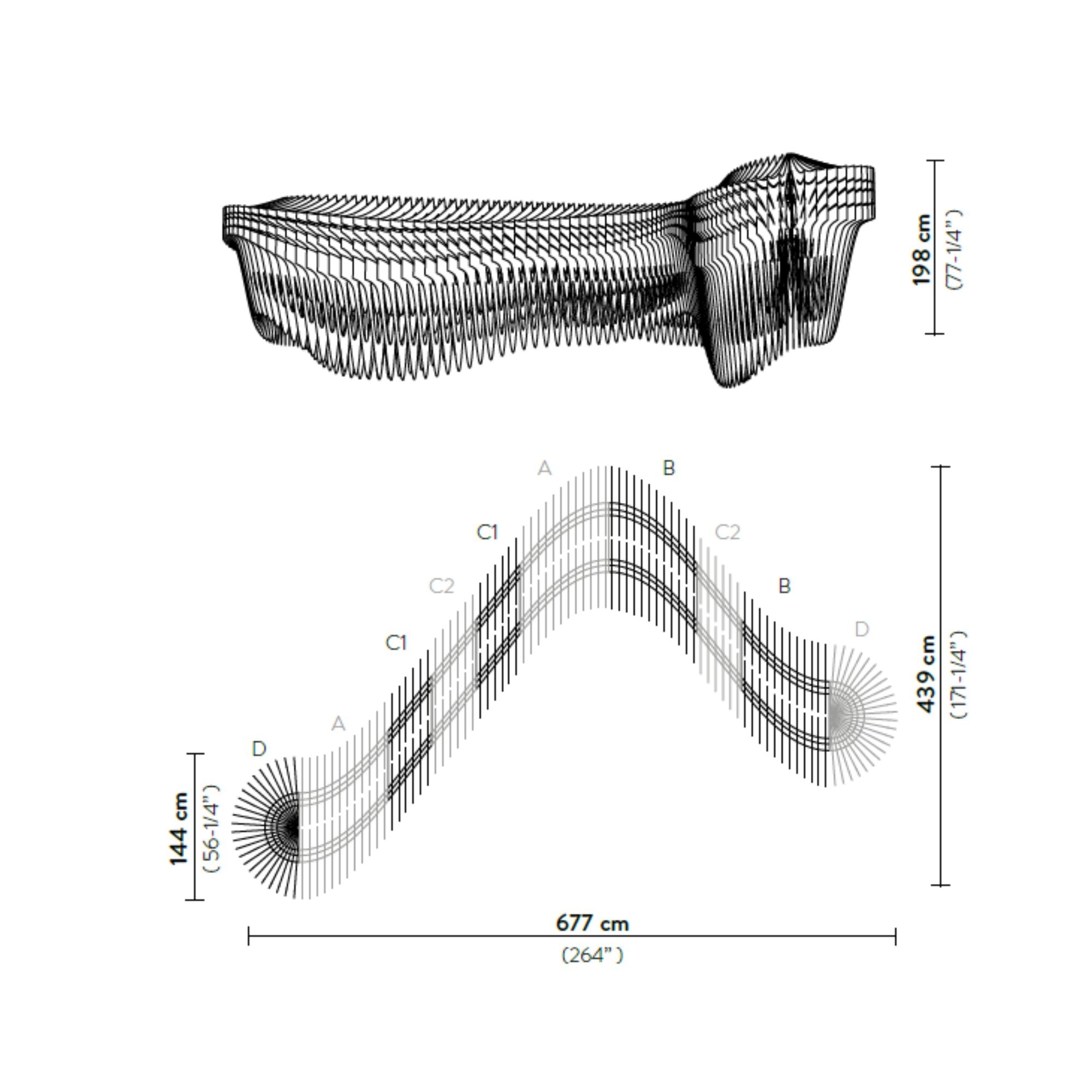 The Aria Infinita pendant lamp - Composition 3 - is a majestic and elegant work in the world of lighting, created by Slamp for the 10th anniversary of the collaboration between Slamp and Zaha Hadid Design. The sculpture is composed of an illuminating body that creates sinusoidal waves in space, wrapped by layers of polycarbonate, each one different from the other, that creates a fluid and visionary design. Aria Infinita is custom-made for bespoke projects or for wide entrances, commercial spaces, and professional areas, giving elegance and uniqueness to any environment. Its presence is capable of transforming an ordinary and simple space into one full of light and design. The visionary, fluid, and dynamic design of Aria expresses the grandeur of architectural works. Designed by Zaha Hadid for Slamp.