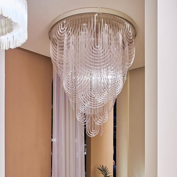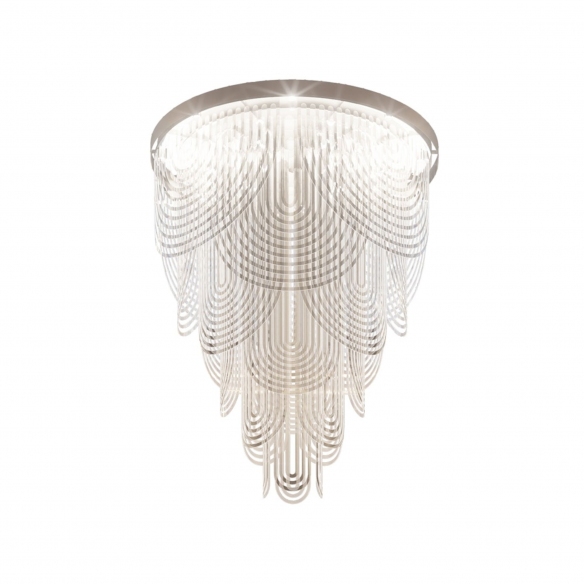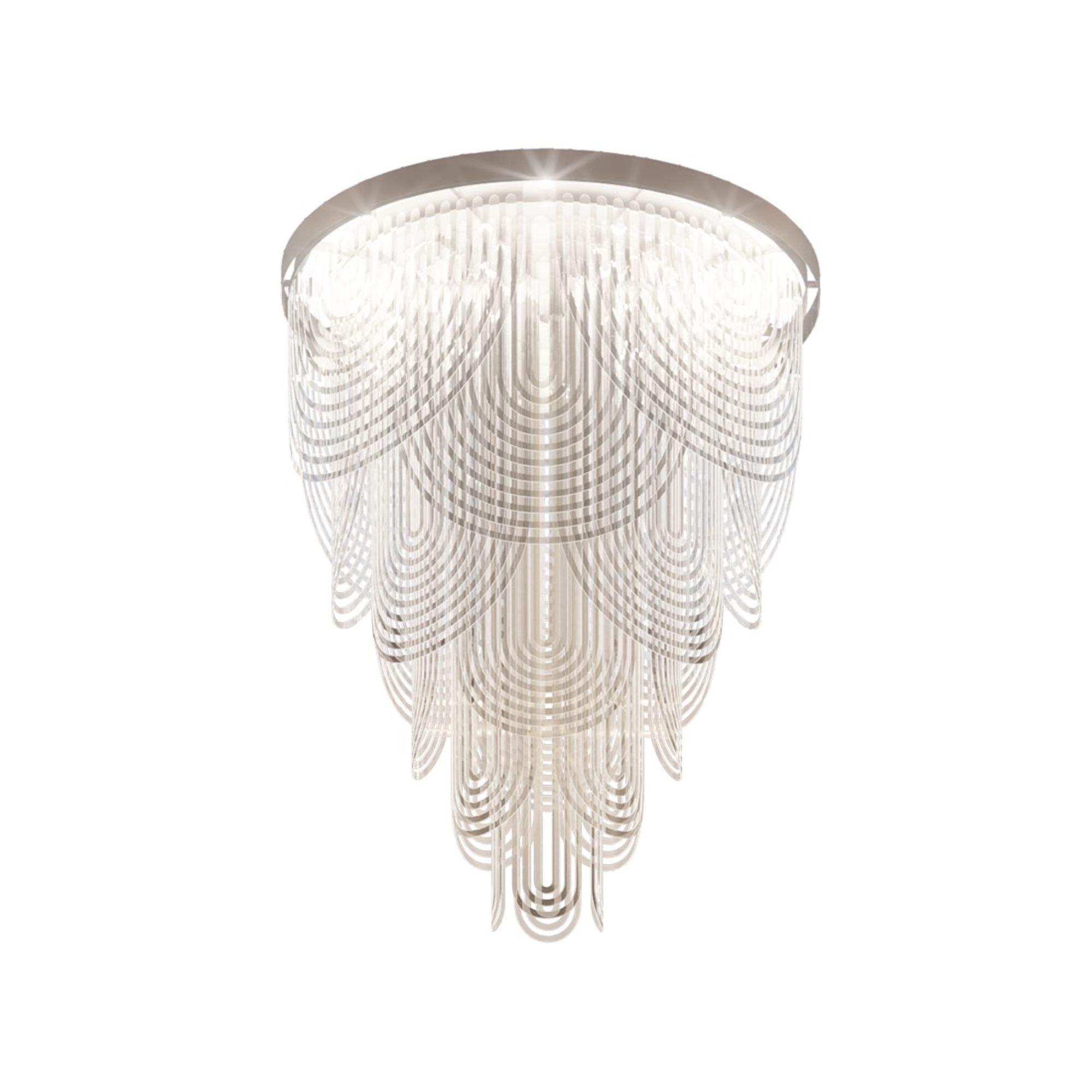 The Le Grand Ceremony pendant lamp is a true ode to femininity created by Slamp in Cristalflex® and iron, materials that render the lamp both elegant and durable. This pendant lamp boasts a theatrical design capable of enchanting both you and your guests, and is particularly adept at fitting into large spaces and areas with ambitious designs - such as banquet halls, luxury hotel lobbies, or grand living rooms – this lamp does more than just illuminate, it embellishes, becoming a focal point for conversation and admiration. Thanks to its design and majesty, Le Grand Ceremony succeeds in creating an intimate and delicate atmosphere. With the Le Grand Ceremony pendant lamp, Slamp invites lovers of beauty to integrate the brightness and warmth of a functional art piece into the heart of their everyday life. Designed by Bruno Rainaldi for Slamp.