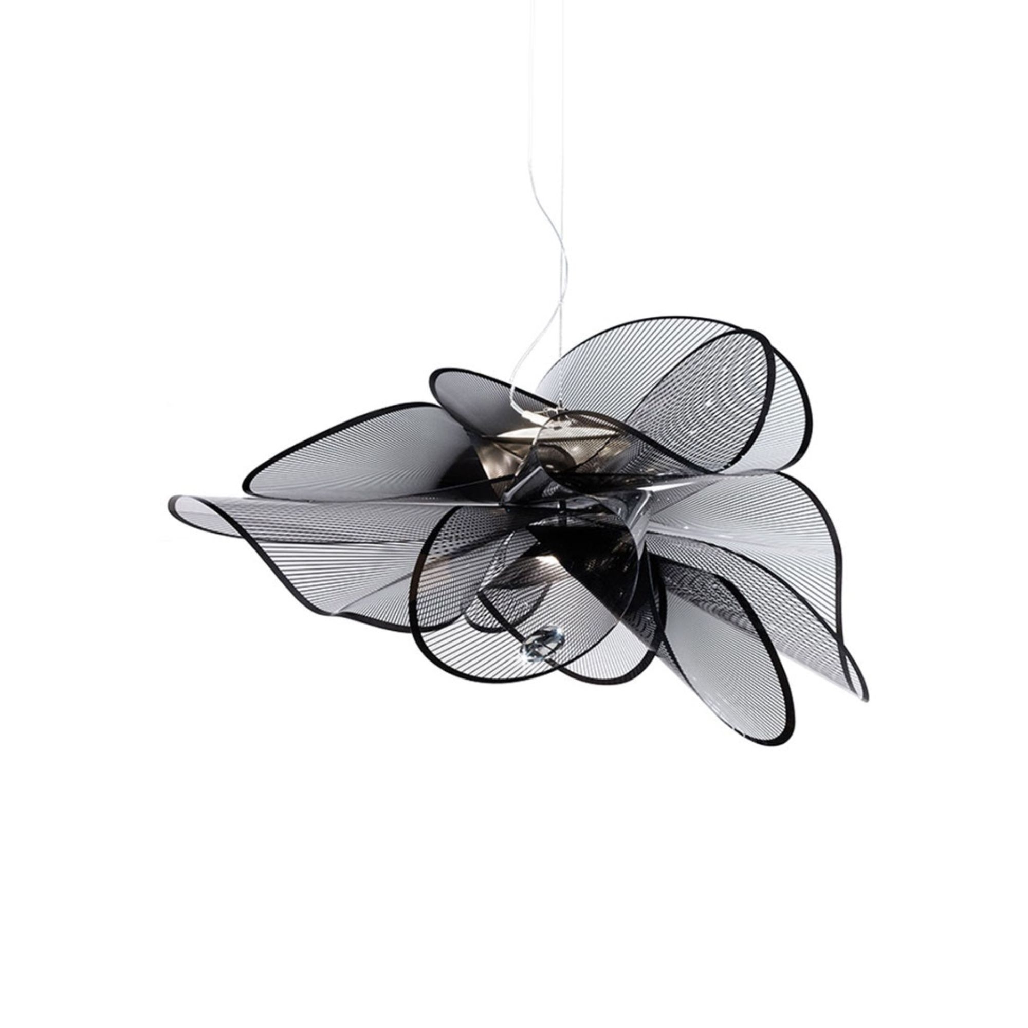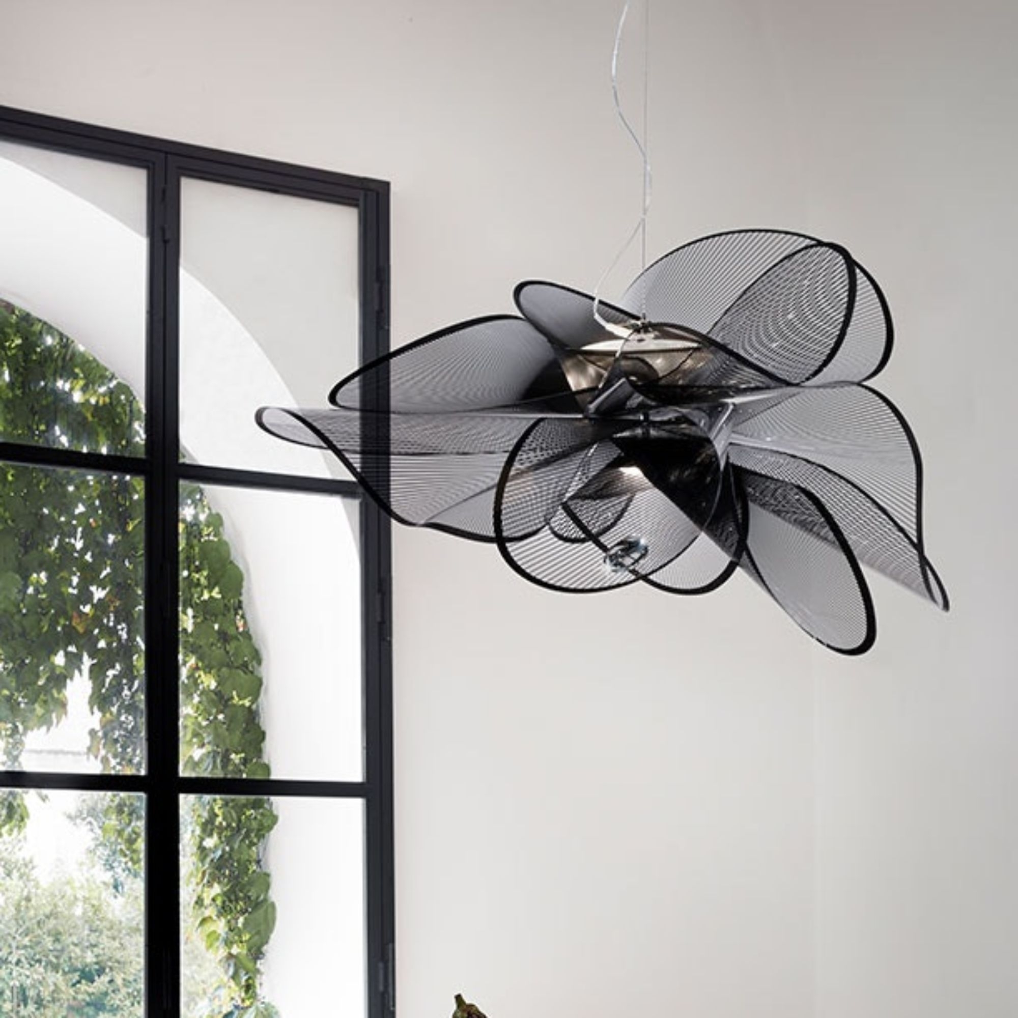 The La Belle Étoile small pendant lamp is an exquisite piece of art made of Cristalflex®, a patented Slamp material that ensures durability and longevity. This stunning pendant light features a contemporary design and is available in two color options (black and white), making it perfect for pairing with any type of setting and interior decorating style: it blends seamlessly into convivial spaces such as dining rooms or living rooms, but it is also ideally placed in representative areas like receptions or atriums, where the art of light knows how to welcome and amaze. The undeniable protagonist of this luminous sculpture is the light itself, whose intensity can vary from 0 to 100 to fully accommodate the desires of those around it. Moreover, the LED light source is easily replaceable through a magnetic attachment. Ideal for those who wish to combine cutting-edge lighting products with refined and glamorous aesthetics that bring beauty and originality even to the most minimalist table settings. Designed by Adriano Rachele for Slamp.