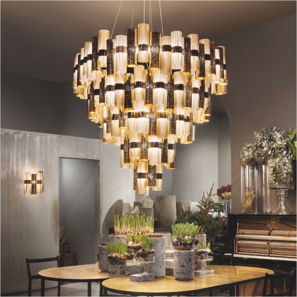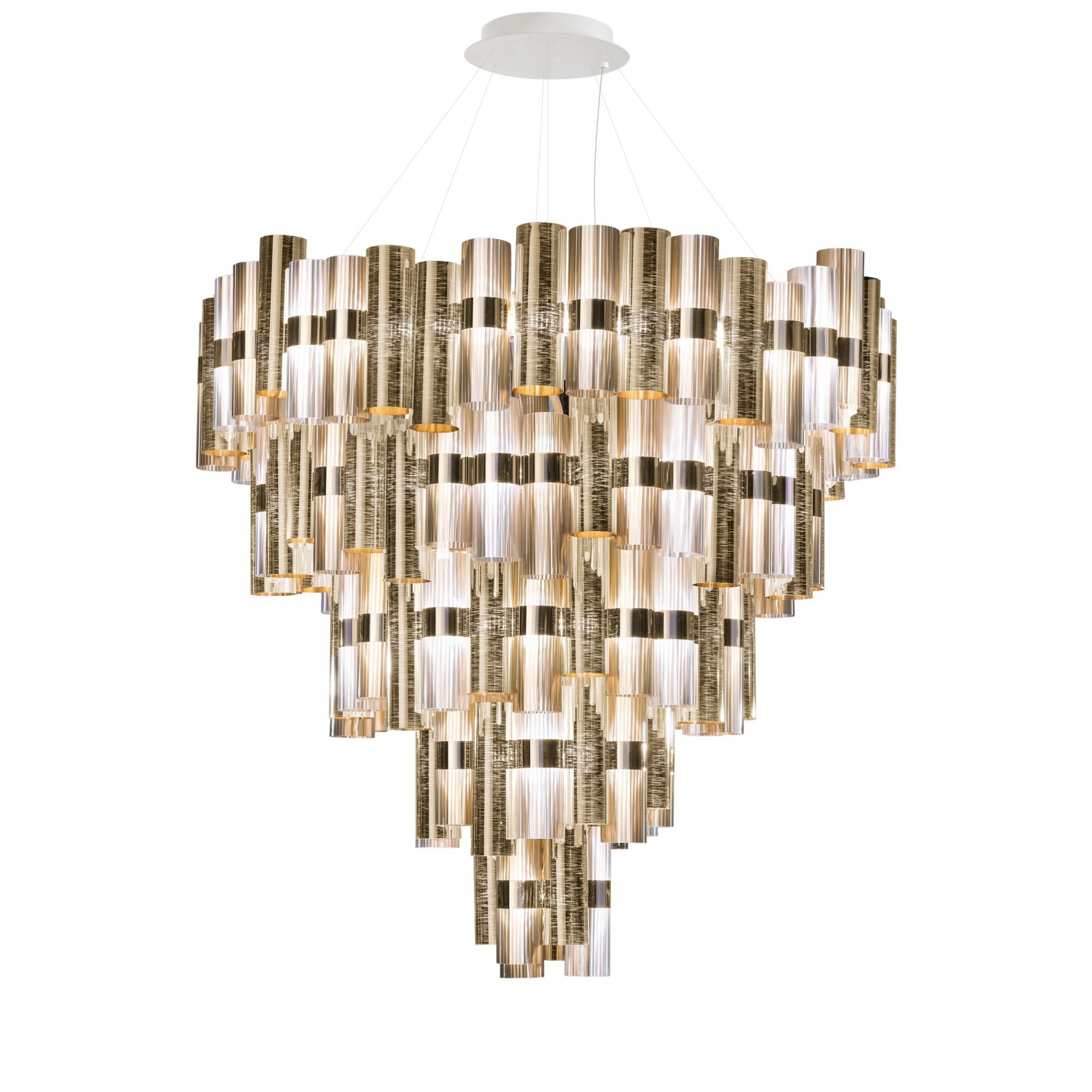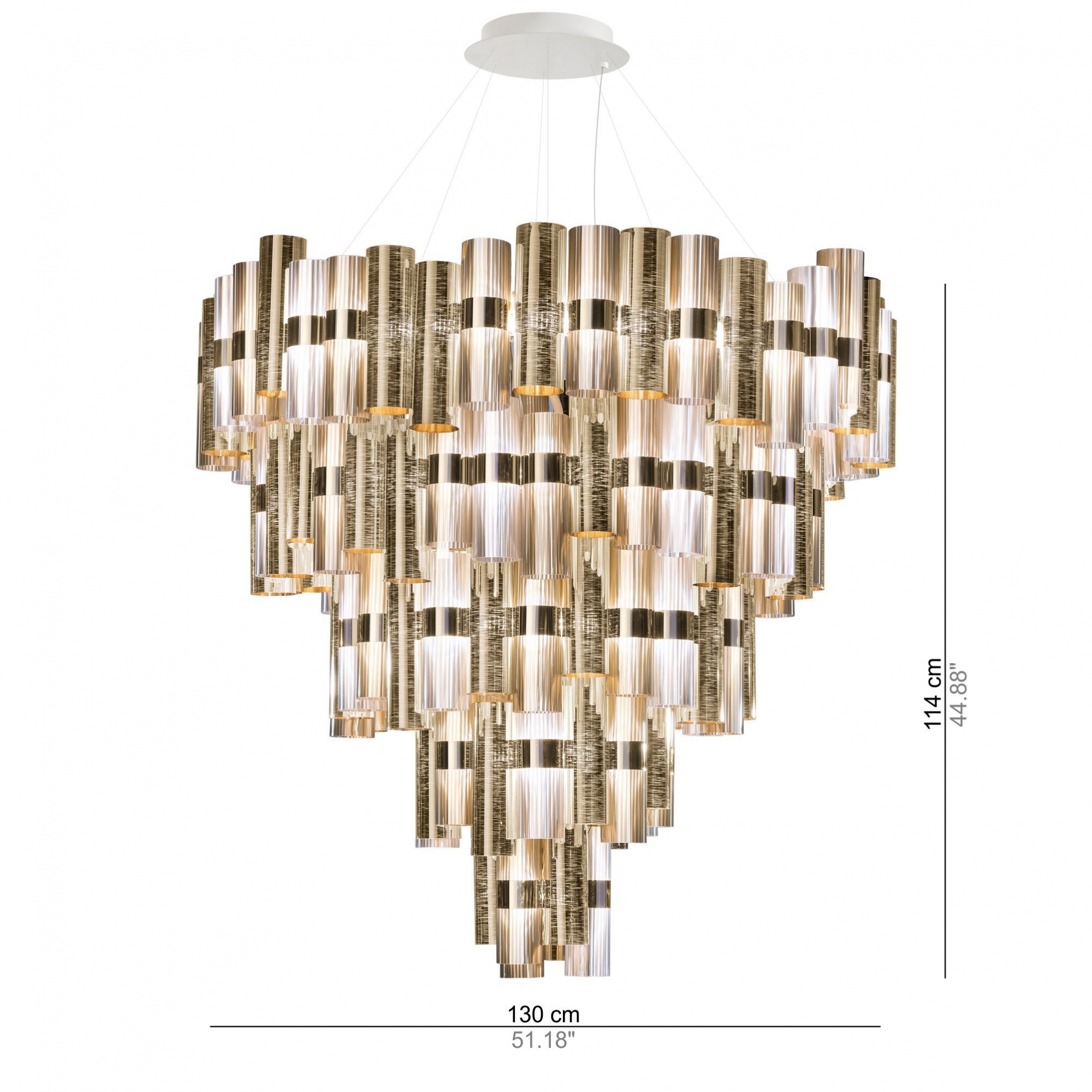 The La Lollona pendant lamp in its 5XL version is a tribute to the sparkling 1950s and their retro charm. Made by Slamp in Lentiflex®, this grandiose pendant lamp consists of a series of unbreakable and lightweight technopolymer cylinders arranged around a central ring with integrated LED lighting. This version of La Lollona has a diameter of 130 cm, with 132 cylinders, and is easy to install, opulent, and dramatic. Moreover, there is a wide availability of colors, making it perfectly adaptable to any location: whether placed in a living room, dining room, in commercial spaces like hotel lobbies, or restaurants, La Lollona creates a luxurious and welcoming atmosphere and adds a touch of joy and life. Designed by Lorenza Bozzoli for Slamp.