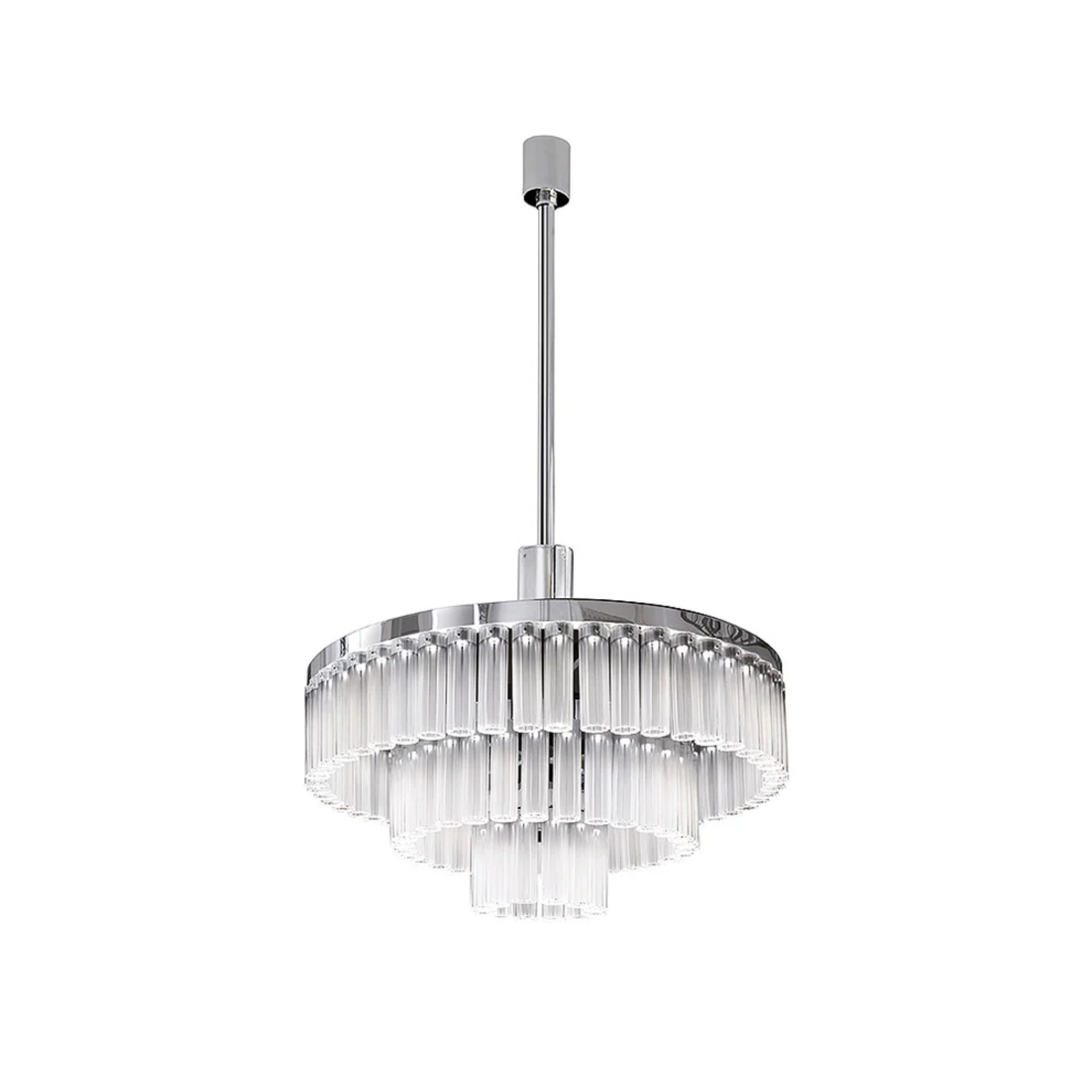 The Orgue 3R Chandelier - Chome Finish - is a magnificent masterpiece with a modern design, conceived by Studio Andrée Putman and crafted in crystal by Lalique. This chandelier is the result of a passion for beauty, an unrelenting pursuit of excellence, and the desire to merge the skill and talent of master glassmakers with the considerable creativity of a world-renowned studio. The Orgue collection rekindles a nostalgia for simple and pure lines characteristic of the 1930s, while remaining utterly contemporary. Paired with the innovative possibilities offered by LED technology, the crystal in these chandeliers creates a rain-of-light effect: whether it is to be placed in a bedroom, home entrance, living room, or within professional or commercial settings, Orgue shapes the perfect atmosphere and adds an additional touch of luxury. Designed by Studio Andrée Putman for Lalique.
