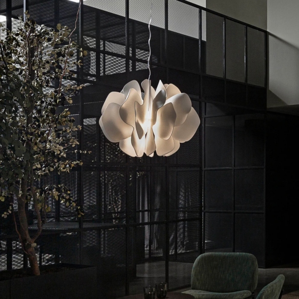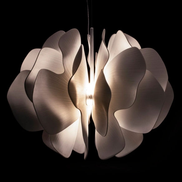 The Nightbloom suspension lamp (60 cm) is crafted from porcelain. This design masterpiece features vibrant, organic shapes inspired directly by the natural kingdom, capturing the eye and enriching any environment with timeless dynamism. Each petal of Nightbloom comes alive thanks to the stunning effect created by its internal light, a play of light and shadow that creates a unique and evocative atmosphere. Handcrafted with expertise in Spain, this pendant lamp is not just a lighting object but a true work of art that can elevate the aesthetic level of any space. With Nightbloom, you dive into a world where the beauty of nature merges with the excellence of contemporary design.