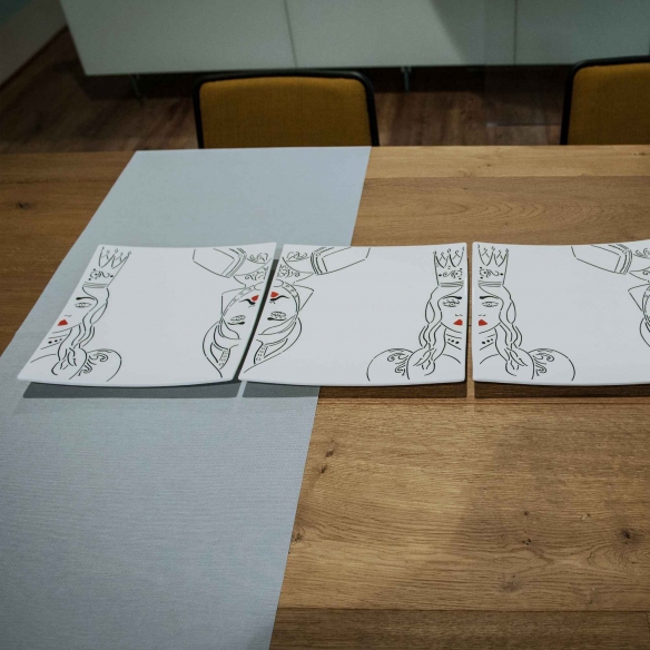 I paladini is a flat plate in Caltagirone ceramic entirely handmade with a modern design. Its designer is inspired by the love between Orlando and Angelica to bring a pinch of Orlando Furioso to your tables. Designed by Andrea Branciforti for Improntabarre.