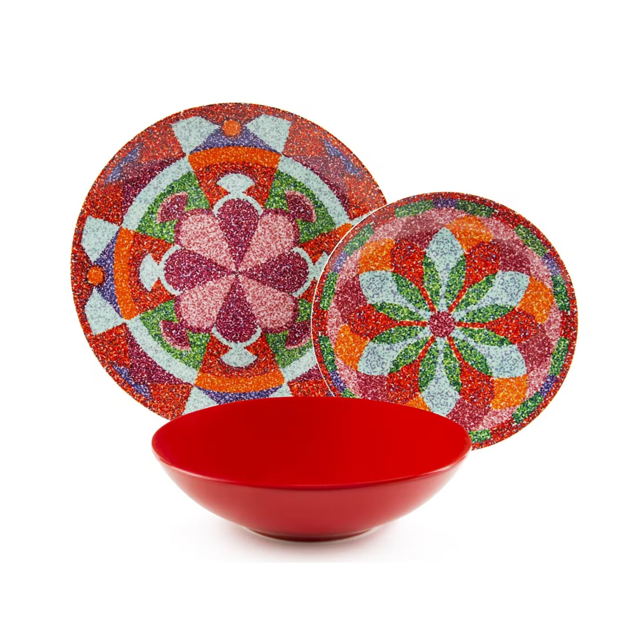 These plates feature decorations typical of the island of Seurat and are perfect for setting an elegant and colorful table. Made by Excelsa.
