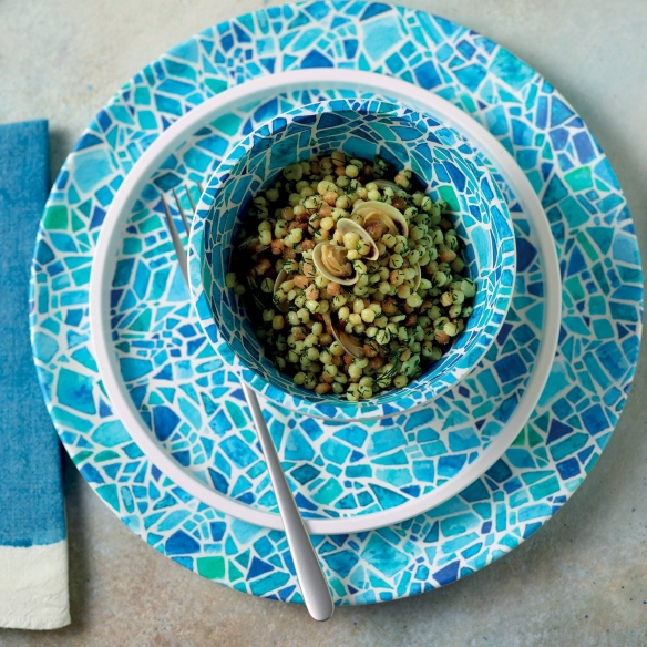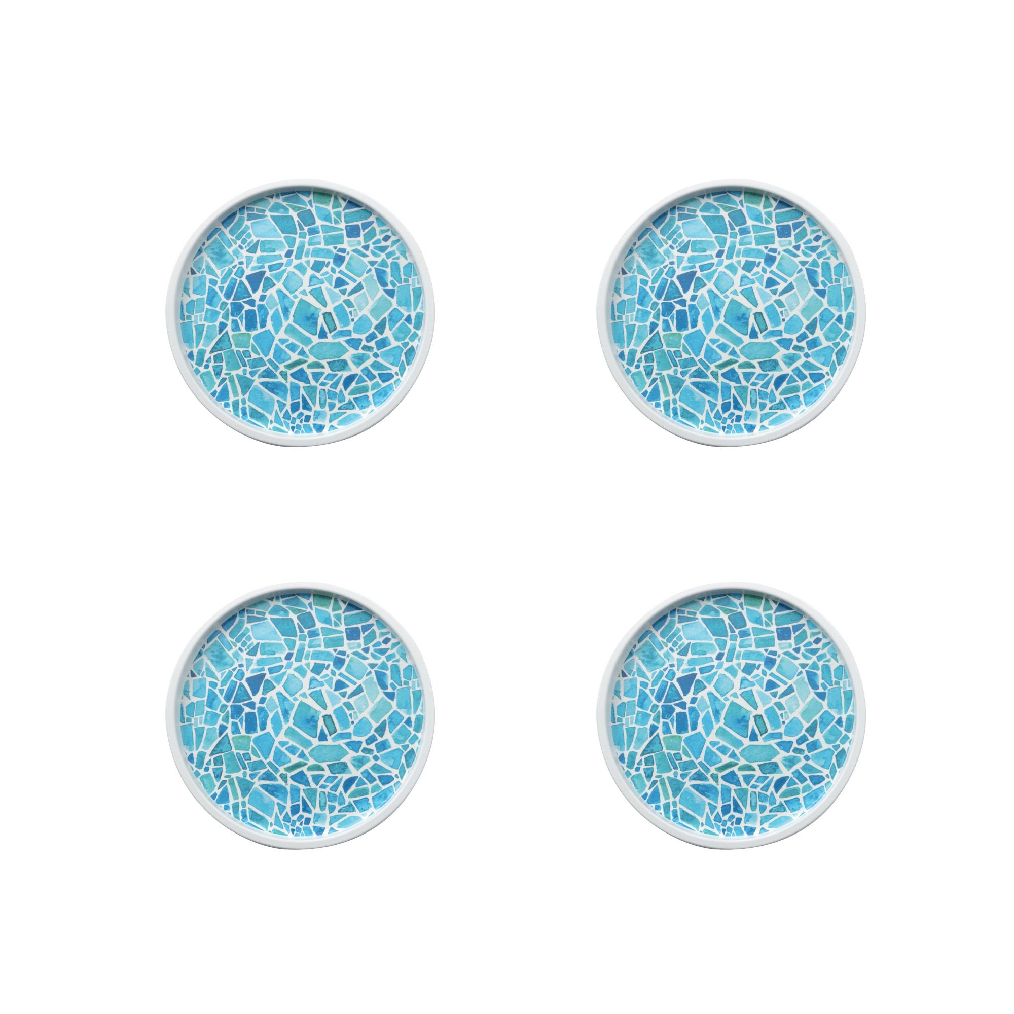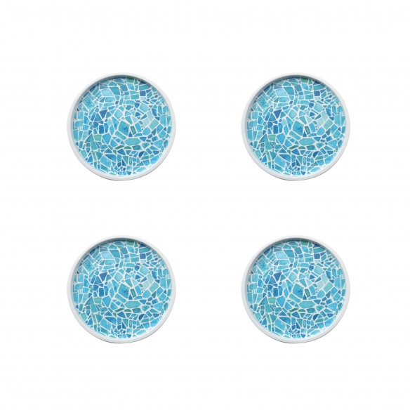 The set of 4 Mosaic plates, with a diameter of 18 cm, perfectly embodies the essence of contemporary design, crafted from melamine, a material cherished for making the plates extremely lightweight while simultaneously durable. The aesthetic characteristics mimic those of porcelain items. It features a unique style with timeless decorations inspired by immersing in clear waters of multiple hues and shades: from blue, to emerald green, to turquoise tones, creating a crystalline ocean atmosphere. Indeed, this Mosaic set is ideal for poolside dining, presenting light meals both indoors and outdoors in domestic or commercial settings, allowing for the creation of picturesque table settings. The set of 4 Mosaic plates is not merely an object for daily use but a genuine collectible jewel, perfect for those who wish to combine the art of cooking with the art of table setting.