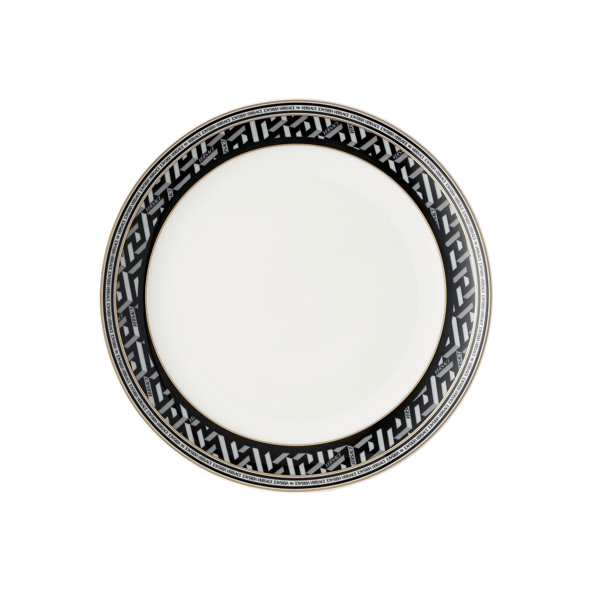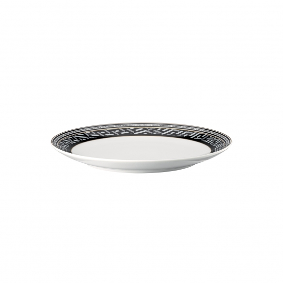 La Greca Signature flat plate (17 cm diameter) crafted in decorated porcelain. Elegant and particular, the La Greca Signature flat plate with its three-dimensional relief pattern on high-quality porcelain, evokes Versace's signature luxury and splendor, offering a modern take on the iconic Versace design. Each plate is enriched with Versace's elegant gold signature, making it not just an everyday item but a true collectible piece. With its illusionary effect and rich color palette, each use becomes a statement of style and a visual delight. Perfect as a gift for special occasions, it will be appreciated by all lovers of design and culinary excellence. Made by Rosenthal Versace.