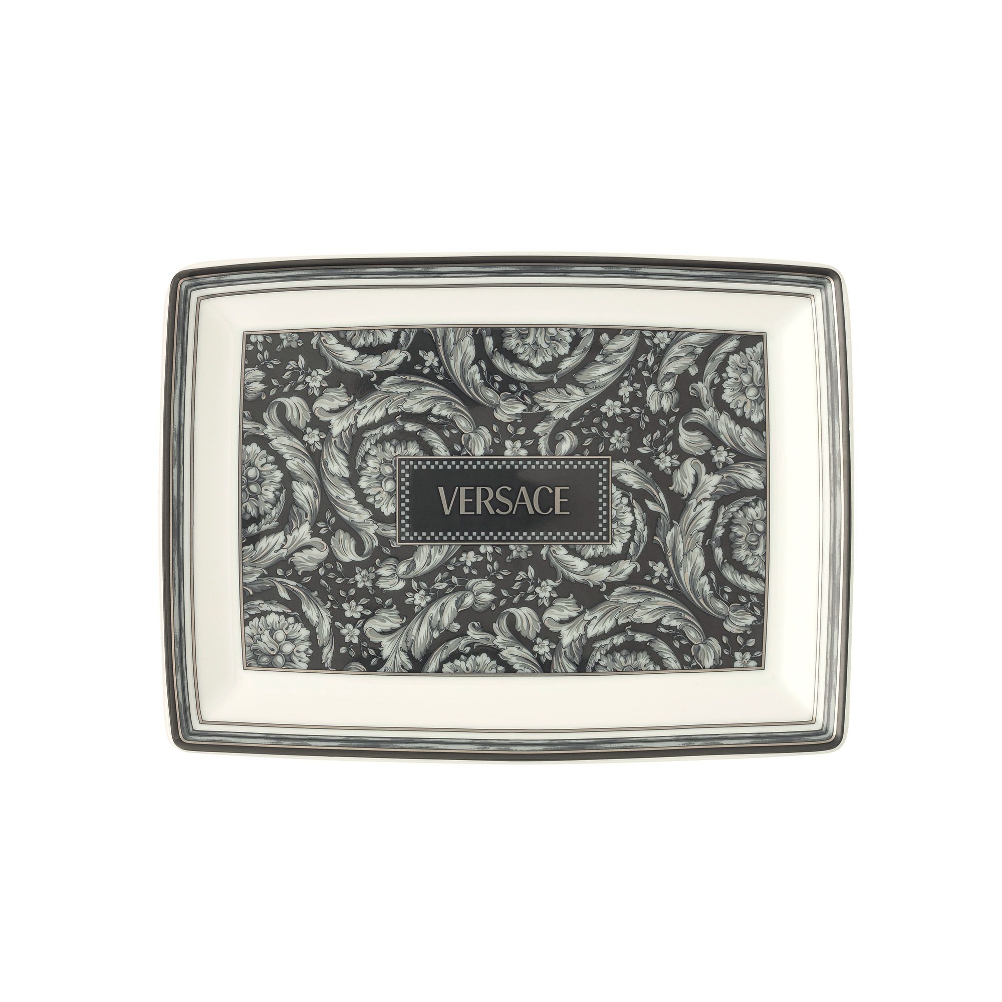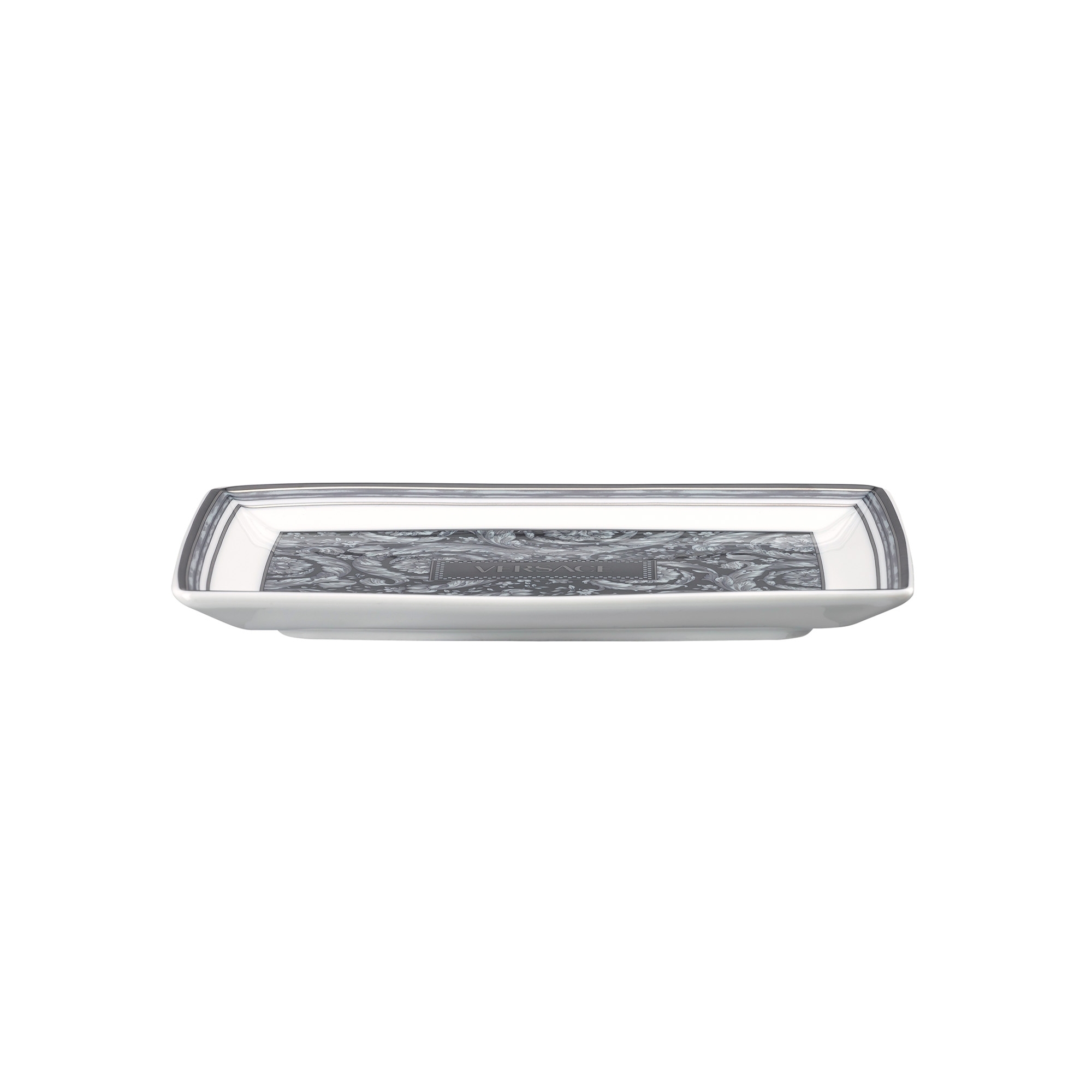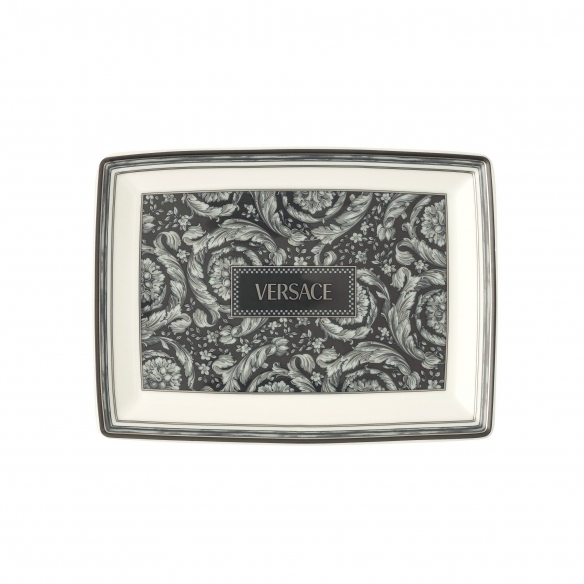 Baroque rectangular plate 18x13 cm made of decorated porcelain. Available in 2 colors, the Baroque rectangular plate with its clean lines and classic rectangular shape, features the unmistakable Baroque aesthetic that embellishes each dish with whimsical details and motifs inspired by the past. The fine workmanship and attention to detail make it a masterpiece capable of withstanding the test of time. The rectangular shape of this plate makes it ideal for presenting a wide variety of dishes, from appetizers to desserts, including cheeses, cold cuts, and main courses. It is an extraordinary ally for professional chefs and cooking enthusiasts who wish to elevate the presentation of their dishes. If you're looking for the perfect gift for culinary art and tableware enthusiasts, this plate is an excellent choice. With its exclusive design and superior quality, it's a gift that leaves a lasting impression and turns every meal into an occasion to remember. Made by Rosenthal Versace.