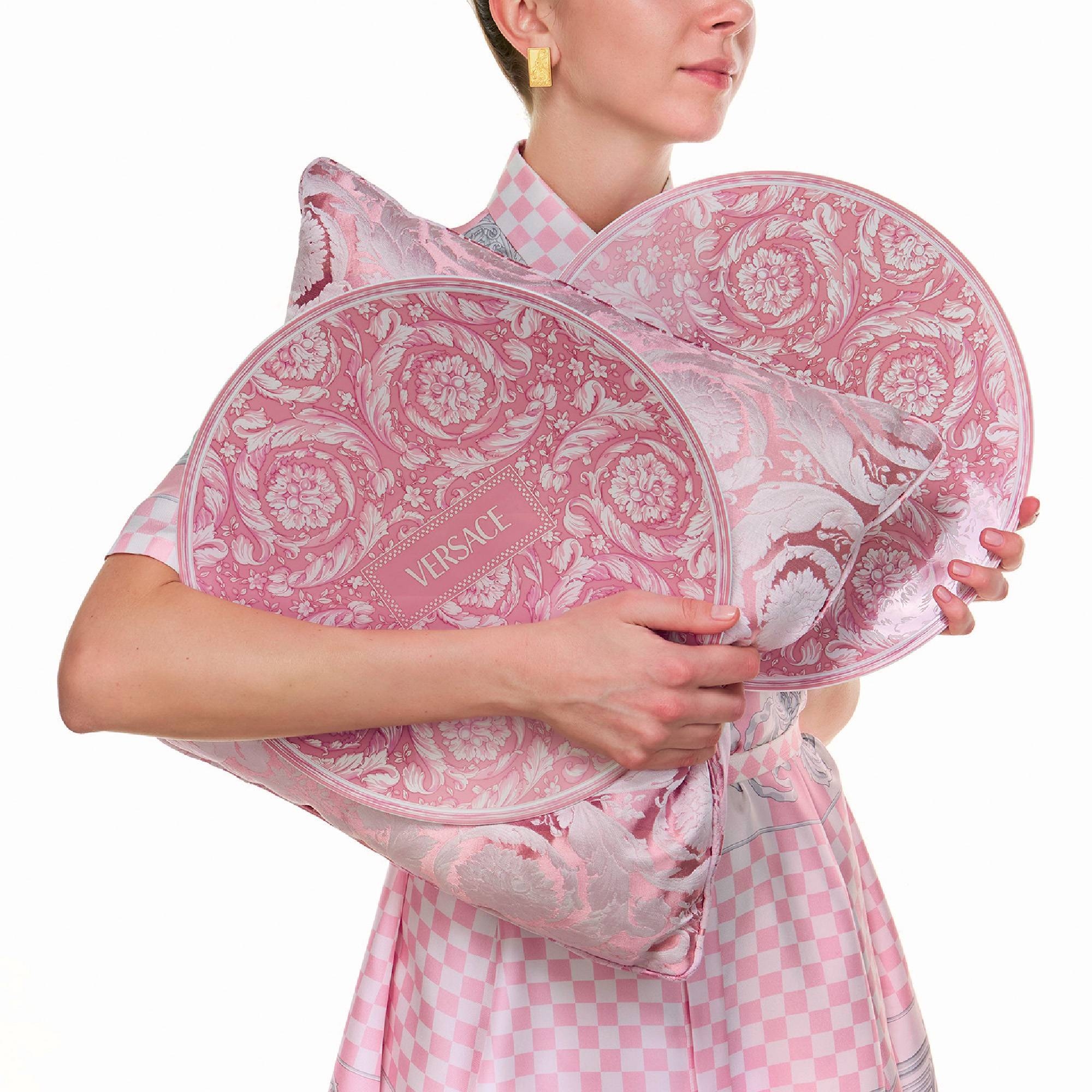 Baroque placeholder plate (33 cm diameter) crafted in decorated porcelain. Available in 3 stunning colors, the Baroque placeholder plate is richly adorned with a lush depiction of baroque flowers and plants, drawing inspiration from the symbolism of ancient Greek and baroque art, making it a unique piece with a significant visual impact. With "Baroque", Versace has not only revitalized a theme dear to its visual identity but has also breathed new life into the rich and complex symbolism characteristic of this artistic movement, bringing it directly to the tables of beauty lovers. This 33 cm placeholder plate is not just a tableware item; it's a tribute to the historic collaboration between two giants of design and fashion, an object that embodies a passion for beauty, art, and timeless elegance. Made by Rosenthal Versace.