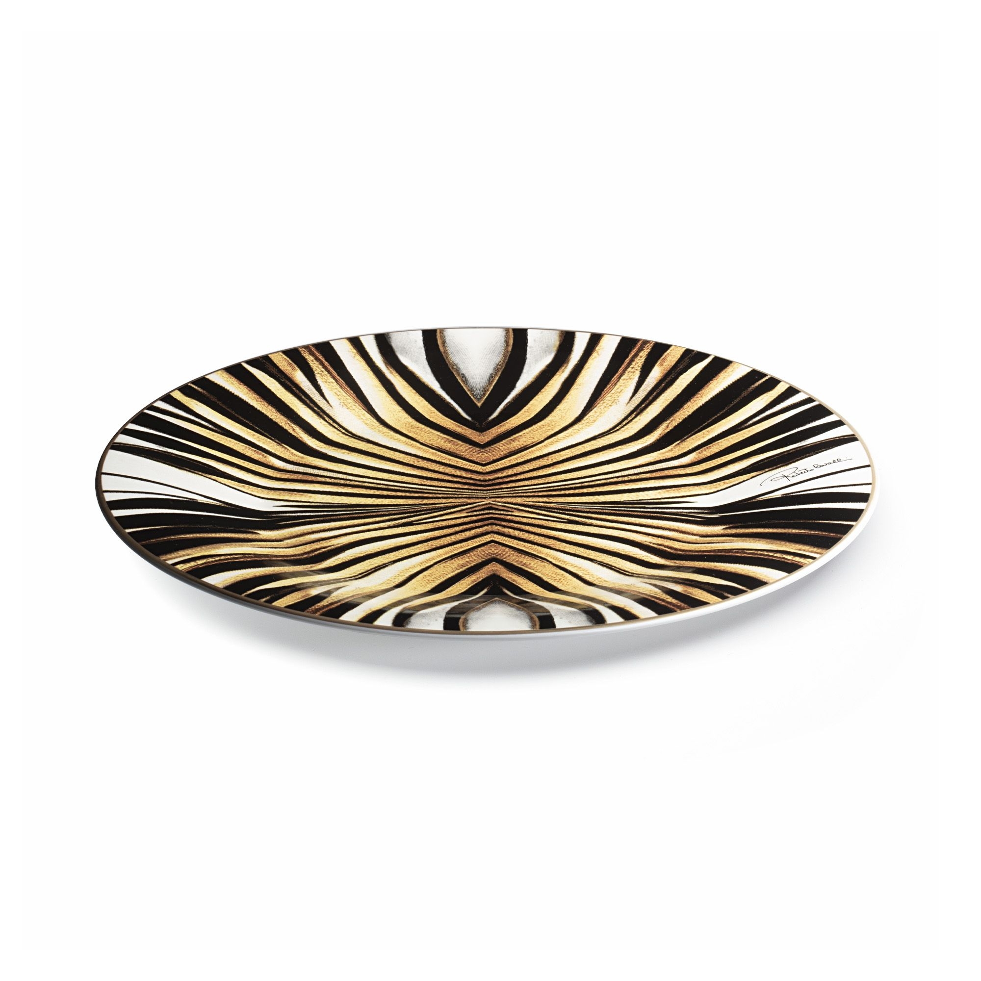 The Ray Of Gold charger plate, with a diameter of 32 cm, is a beautiful masterpiece for your kitchen crafted by Roberto Cavalli in Bone China porcelain, a material renowned for its remarkable durability and elegance. This charger plate features an animalier pattern with a black and gold rim. Suitable for modern, casual, or classic table settings, Ray Of Gold becomes a true design accessory that uniquely captures guests' attention. Ray Of Gold is the ideal choice for those wishing to add a touch of luxury to their kitchen or dining room, transforming the act of eating into a magnificent and unforgettable event. The charger plate is versatile enough to be used for formal occasions as well as to enrich daily routines, demonstrating that high-end design can go hand in hand with practicality. Purchase this exquisite gem right here, on Newpop.it!