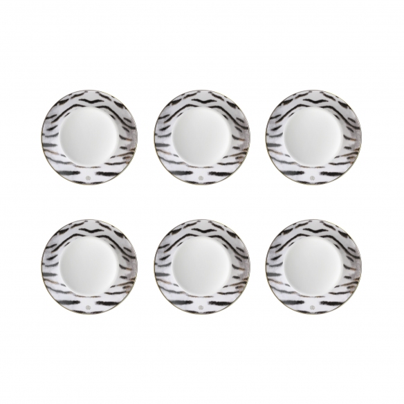 The Tiger set of 6 soup plates, with a diameter of 22 cm, is a stunning masterpiece for your kitchen crafted by Roberto Cavalli from Bone China porcelain, a material praised for its remarkable durability and elegance. This set of 6 soup plates is characterized by the typical animalier patterns of the Roberto Cavalli maison, with pure gold details completing the design of each piece, making it a true designer set that uniquely captures the attention of guests. The Tiger set is the ideal choice for those who wish to add a touch of luxury to their kitchen or dining room, turning the act of eating into a magnificent and unforgettable event. The set of 6 soup plates is versatile enough for both formal occasions and enhancing the daily routine, showing that high-end design can go hand-in-hand with practicality. Purchase this refined set right here, on Newpop.it!