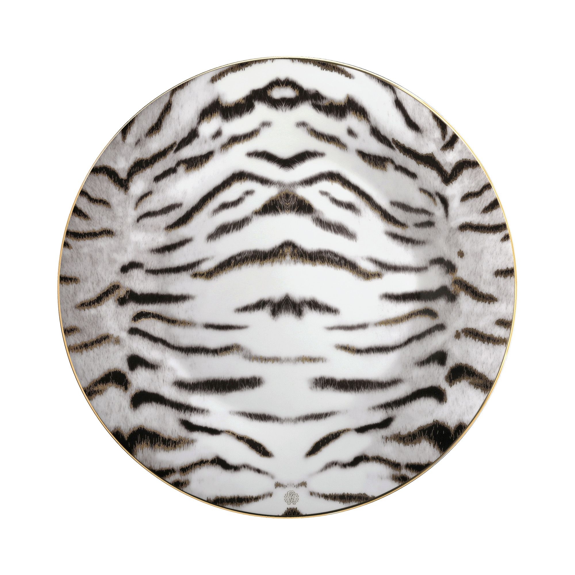 The Tiger charger plate is a beautiful masterpiece for your kitchen, crafted by Roberto Cavalli from Bone China porcelain, a material admired for its remarkable longevity and elegance. This charger plate is characterized by the animalier motifs typical of the Roberto Cavalli maison, with details in gold leaf that complete the design of each piece, becoming a true design accessory that uniquely captures the attention of guests. The Tiger charger plate is the ideal choice for those who wish to bestow a touch of luxury on their kitchen or dining room, transforming the act of eating into a magnificent and unforgettable event. The charger plate is versatile enough to be used for both formal occasions and to enrich the daily routine, demonstrating that high-end design can go hand in hand with practicality. Purchase this refined jewel right here, on Newpop.it!