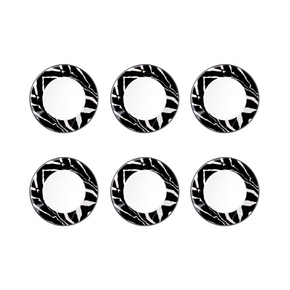 The Zebra set of 6 soup plates, with a diameter of 22 cm, is a beautiful masterpiece for your kitchen, crafted by Roberto Cavalli from Bone China porcelain, a material admired for its remarkable longevity and elegance. This set of 6 soup plates is characterized by the animalier motifs typical of the brand: the zebra pattern decorates these porcelain accessories, completed by the RC monogram, becoming a true design set that uniquely captures the attention of guests. This Zebra set is the ideal choice for those who wish to impart a touch of luxury to their kitchen or dining room, transforming the act of eating into a magnificent and unforgettable event. The set of 6 soup plates is versatile enough to be used for both formal occasions and to enrich the daily routine, demonstrating that high-end design can go hand in hand with practicality. Purchase this refined set right here, on Newpop.it!
