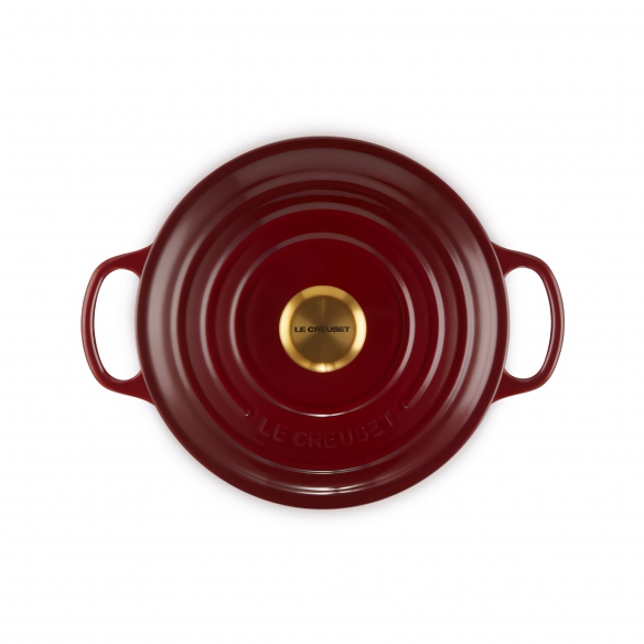 Cocotte Evolution round vetrified cast iron casserole with a diameter of 22 cm available in 5 color finishings: Cherry, Matt Black, Orange, Marsiglia blue and Meringue. This particular casserole guarantees wide versatility of use for the preparation and storage of food. This product, like the other cast iron models, is made by pouring the liquid cast iron into sand molds which are subsequently broken to pass the triple vitrification phase at high temperature over the entire surface. The initial vitrification guarantees long life and resistance to thermal shocks, the subsequent vitrifications give a brightly colored finish. The Cocotte Casserole is suitable for all heat sources, including induction and oven. The vitrified surface does not absorb or transfer moisture, odors, flavors to the dishes being cooked, resists all types of acidity and maintains the flavor and nutritional properties of the food. It is very easy to use thanks to the large handles that guarantee a secure grip and also thanks to the stainless steel knob that easily disperses heat. The excellent conduction and uniform thickness of the cast iron guarantee a homogeneous distribution of heat. The lid is the wild card of this product: thanks to the rounded shape and its structure, a humid environment is created that hydrates the dishes, keeping them perfect. Made by Le Creuset. Browse the catalog on newpop.it to discover the other products in the wide Le Creuset range!