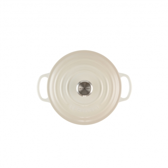 Cocotte Evolution round vetrified cast iron casserole with a diameter of 22 cm available in 5 color finishings: Cherry, Matt Black, Orange, Marsiglia blue and Meringue. This particular casserole guarantees wide versatility of use for the preparation and storage of food. This product, like the other cast iron models, is made by pouring the liquid cast iron into sand molds which are subsequently broken to pass the triple vitrification phase at high temperature over the entire surface. The initial vitrification guarantees long life and resistance to thermal shocks, the subsequent vitrifications give a brightly colored finish. The Cocotte Casserole is suitable for all heat sources, including induction and oven. The vitrified surface does not absorb or transfer moisture, odors, flavors to the dishes being cooked, resists all types of acidity and maintains the flavor and nutritional properties of the food. It is very easy to use thanks to the large handles that guarantee a secure grip and also thanks to the stainless steel knob that easily disperses heat. The excellent conduction and uniform thickness of the cast iron guarantee a homogeneous distribution of heat. The lid is the wild card of this product: thanks to the rounded shape and its structure, a humid environment is created that hydrates the dishes, keeping them perfect. Made by Le Creuset. Browse the catalog on newpop.it to discover the other products in the wide Le Creuset range!