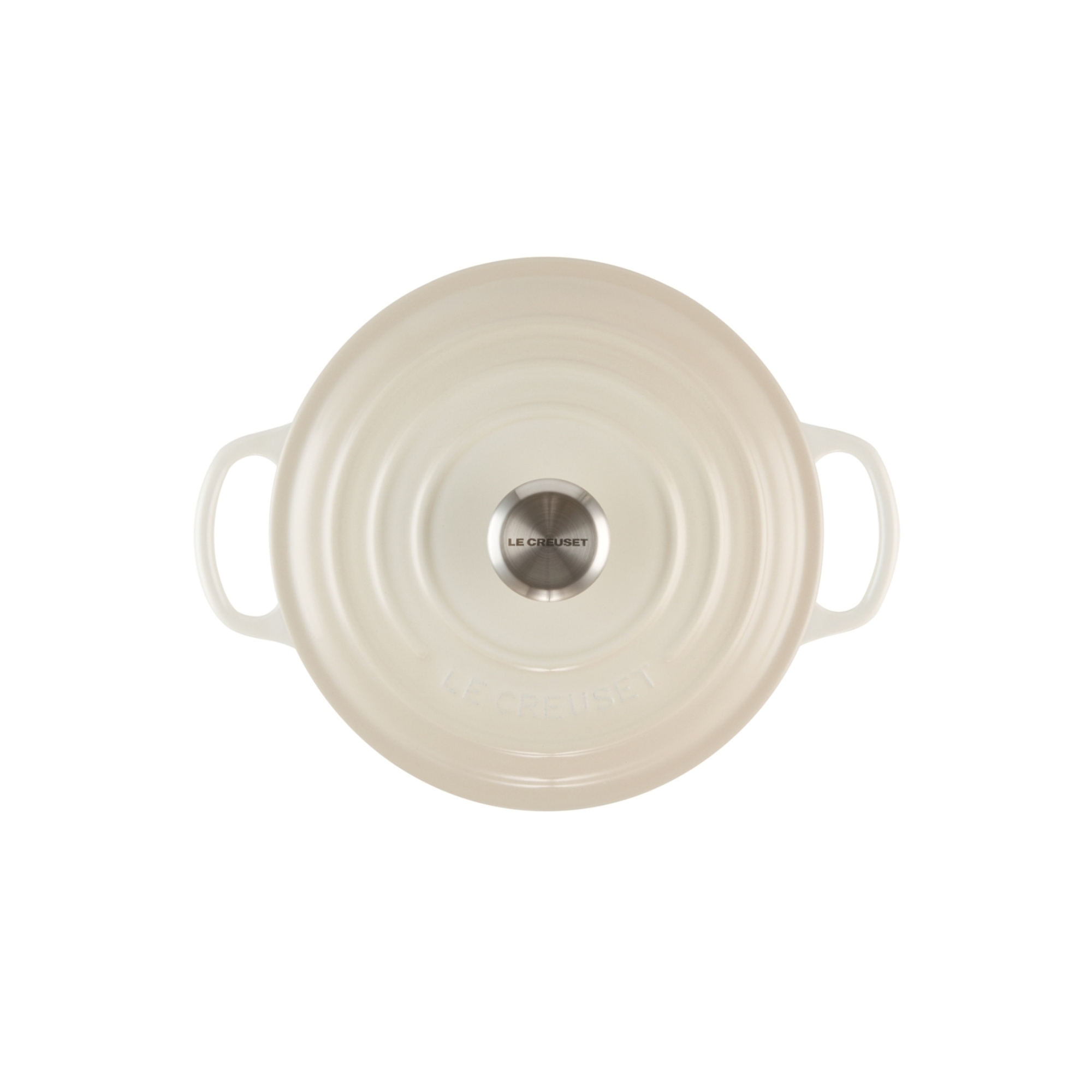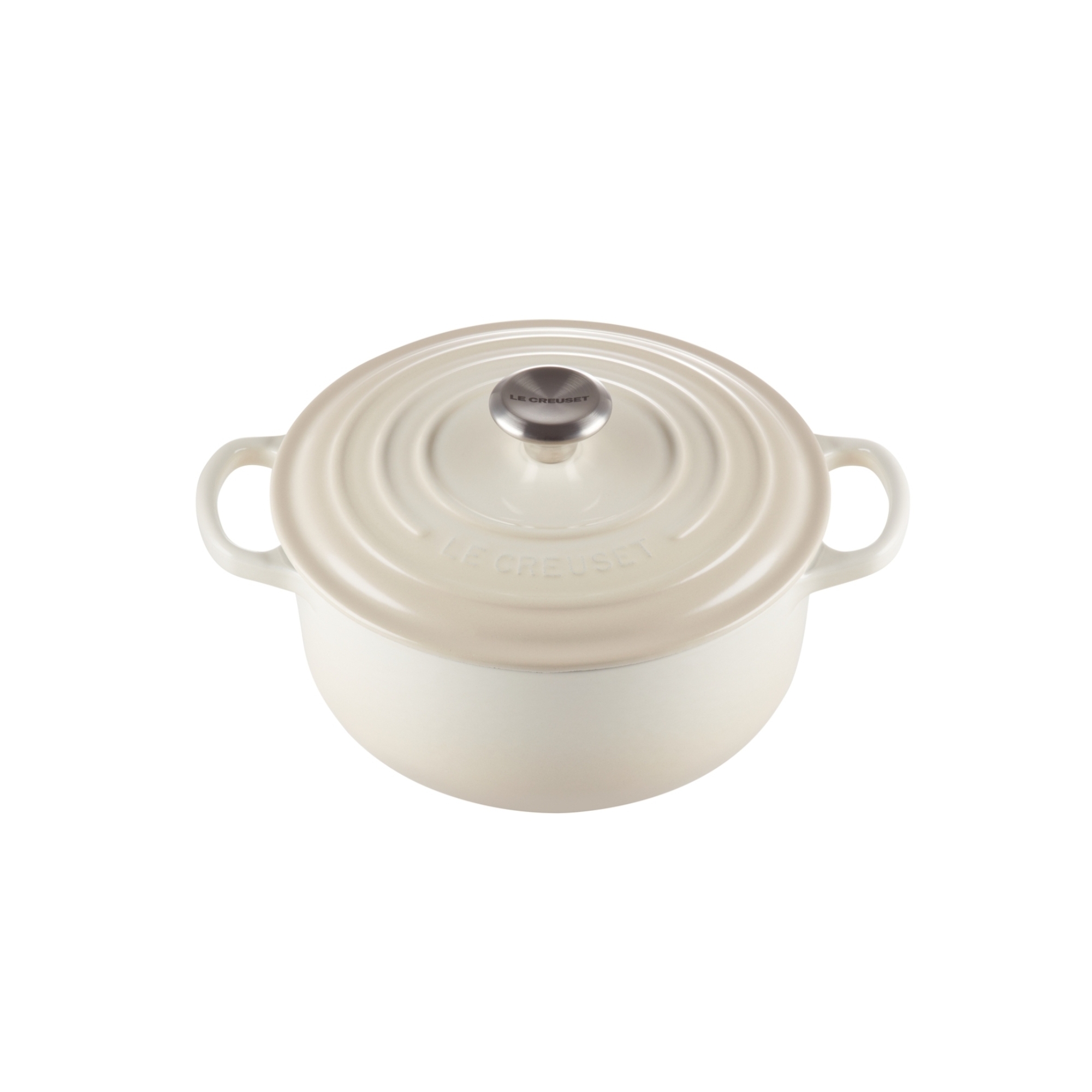 Cocotte Evolution round vetrified cast iron casserole with a diameter of 26 cm available in 5 color finishings: Cherry, Matt Black, Orange, Marsiglia blue and Meringue. This particular casserole guarantees wide versatility of use for the preparation and storage of food. This product, like the other cast iron models, is made by pouring the liquid cast iron into sand molds which are subsequently broken to pass the triple vitrification phase at high temperature over the entire surface. The initial vitrification guarantees long life and resistance to thermal shocks, the subsequent vitrifications give a brightly colored finish. The Cocotte Casserole is suitable for all heat sources, including induction and oven. The vitrified surface does not absorb or transfer moisture, odors, flavors to the dishes being cooked, resists all types of acidity and maintains the flavor and nutritional properties of the food. It is very easy to use thanks to the large handles that guarantee a secure grip and also thanks to the stainless steel knob that easily disperses heat. The excellent conduction and uniform thickness of the cast iron guarantee a homogeneous distribution of heat. The lid is the wild card of this product: thanks to the rounded shape and its structure, a humid environment is created that hydrates the dishes, keeping them perfect. Made by Le Creuset. Browse the catalog on newpop.it to discover the other products in the wide Le Creuset range!