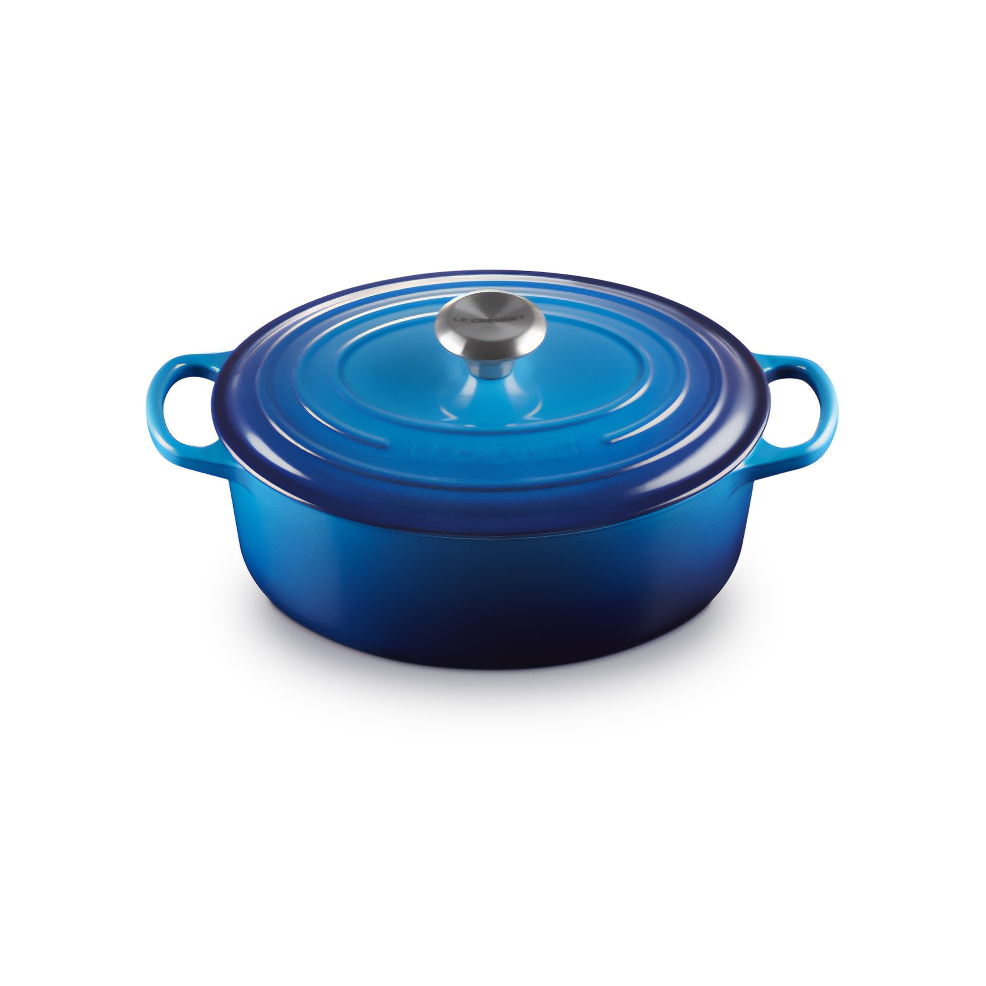 Evolution oval Cocotte casserole made of vitrified cast iron. Available in a selection of 4 colors, it is the key kitchenware item! The strength of Le Creuset is the material used to create unique objects of its kind: in fact, vitrified cast iron is not only one of the most hygienic and long-lasting materials, but it retains heat to cook and brown evenly, enhancing the flavour of perfectly cooked food! This wonderful Casserole comes with two stylish and comfortable handles, so you can easily move from hob to oven to table. The cherry on top of the cake is the lid: the heat resistant knob (up to 260°C), designed for a better grip. Designed by Le Creuset.