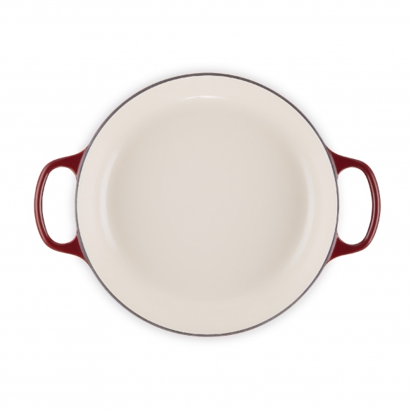 Evolution low round pan ( diam. 26 cm) made of vitrified cast iron, enamelled both outside and inside. The flattened shape and shallow sides make it perfect for browning meat or vegetables, for simmering or in the oven. This pan is part of the exctensive cast iron collection created by Le Creuset, which has become a modern day culinary icon. The high-quality vitrified cast iron, strong point of the brand since the very beginning, enhances the flavour of your favourite creations, while the special handles make it comfortable and easy to grip. Choose the uniqueness, the quality and the attention to details of Le Creuset!