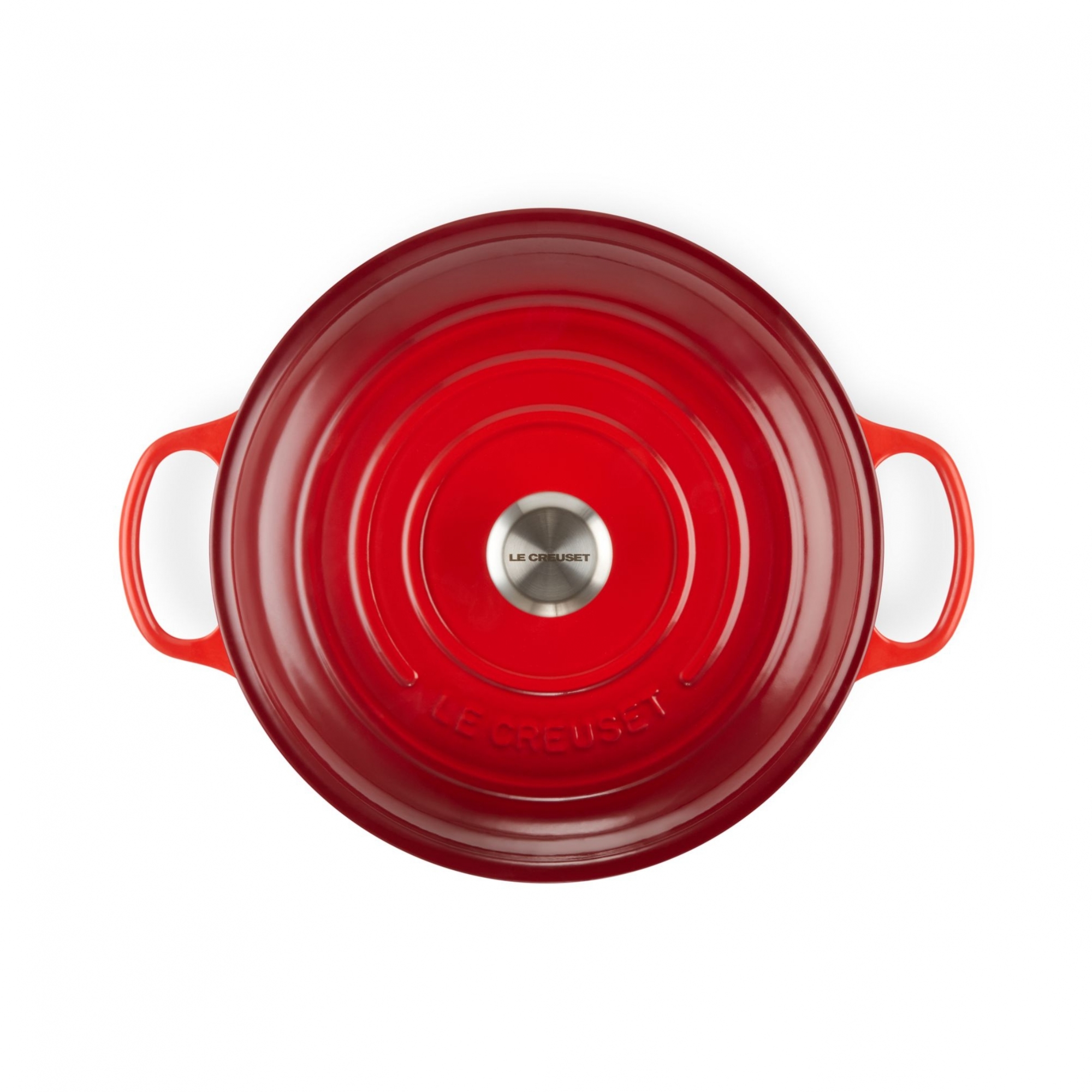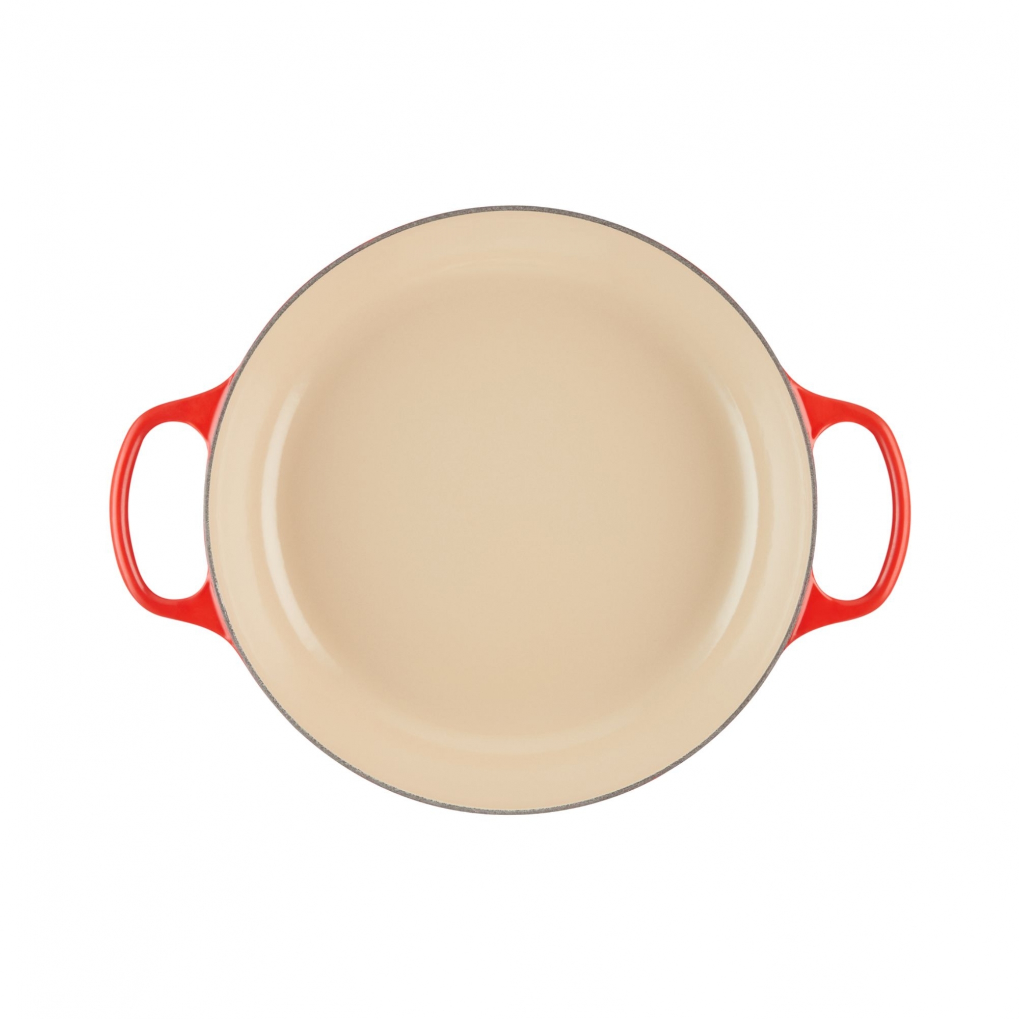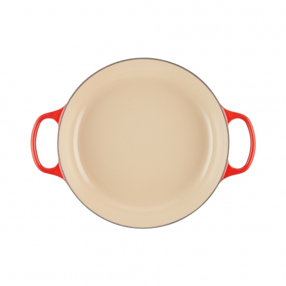 Evolution low round pan ( diam. 26 cm) made of vitrified cast iron, enamelled both outside and inside. The flattened shape and shallow sides make it perfect for browning meat or vegetables, for simmering or in the oven. This pan is part of the exctensive cast iron collection created by Le Creuset, which has become a modern day culinary icon. The high-quality vitrified cast iron, strong point of the brand since the very beginning, enhances the flavour of your favourite creations, while the special handles make it comfortable and easy to grip. Choose the uniqueness, the quality and the attention to details of Le Creuset!