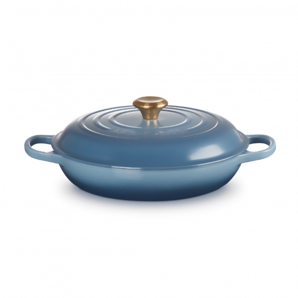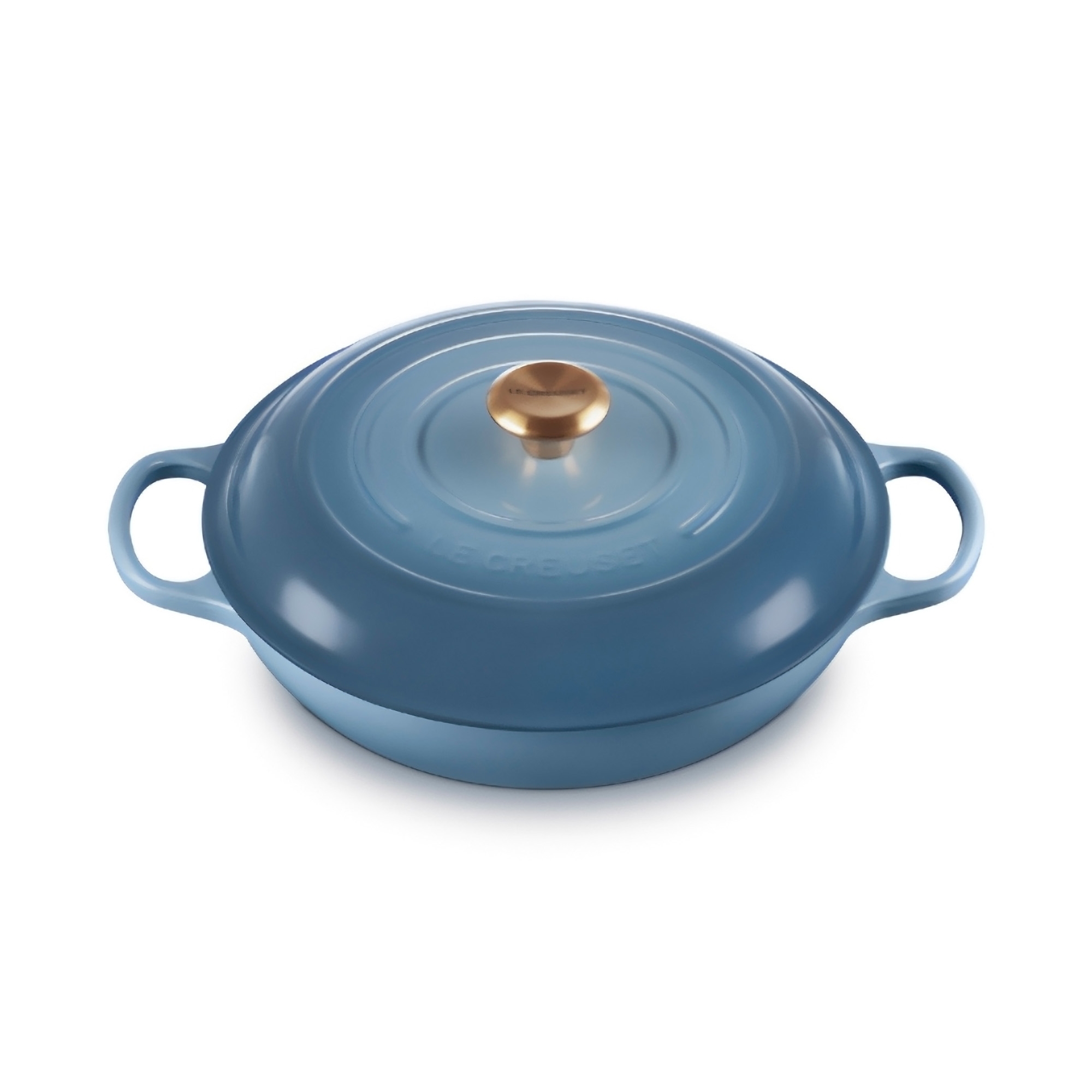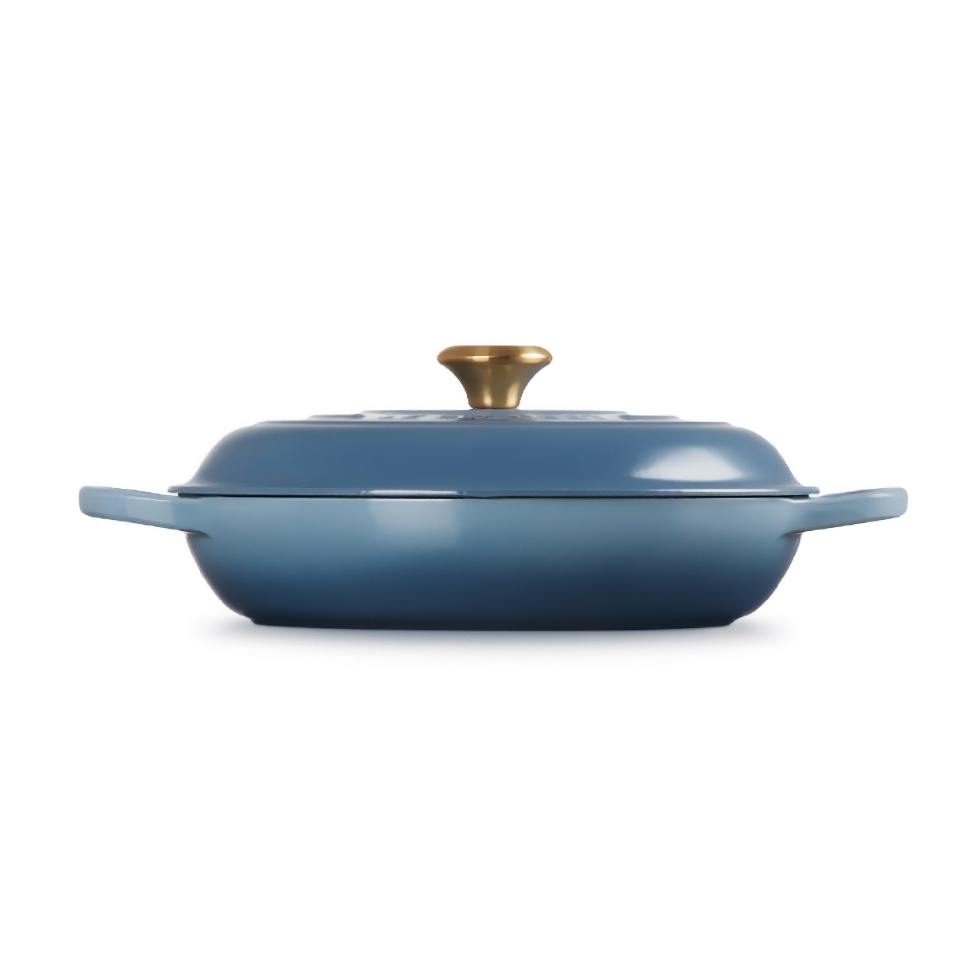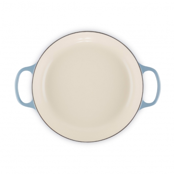 Evolution low round pan ( diam. 26 cm) made of vitrified cast iron, enamelled both outside and inside. The flattened shape and shallow sides make it perfect for browning meat or vegetables, for simmering or in the oven. This pan is part of the exctensive cast iron collection created by Le Creuset, which has become a modern day culinary icon. The high-quality vitrified cast iron, strong point of the brand since the very beginning, enhances the flavour of your favourite creations, while the special handles make it comfortable and easy to grip. Choose the uniqueness, the quality and the attention to details of Le Creuset!
