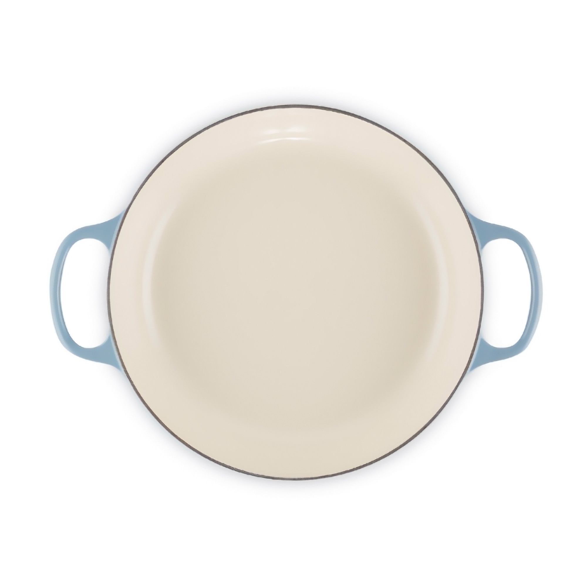 Are you looking for the highest quality kitchenware item? Evolution vitrified cast iron round pan is what you've been looking for! The wide Le Creuset cast iron range stands out as a modern day icon. Designed to ensure outstanding performance, this unique pan will allow you to prepare perfectly cooked dishes, such as soups, stews or roasts, just to mention a few. The high- quality vitrified cast iron, which has been the strong point of this brand since the very beginning, enhances the flavour of your favourite creations, keeping them warm and tasty. The special handles make it comfortable and easy to grip, lift and move. What are you waiting for? Choose the highest quality in cooking your favorite dishes! Enjoy cooking with Le Creuset! Discover the exclusive Le Creuset products on our extensive range, here on Newpop!