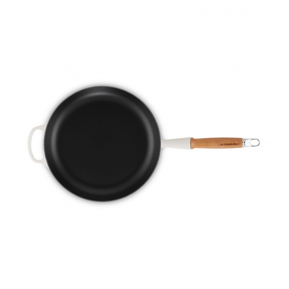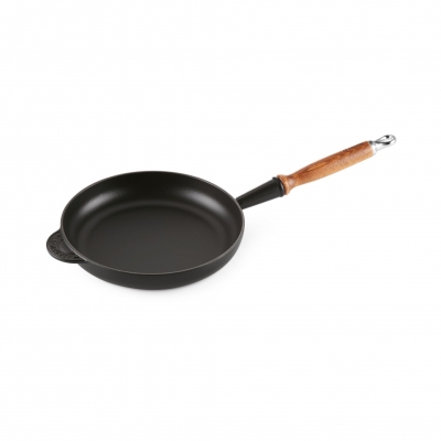 Pan ( diam. 28 cm) made of vitrified cast iron and wooden handle. Available in 3 color finishes (orange, cherry and matt black) this pan is perfect for sautéing vegetables or fish but also for grilling meat. The vitrified cast iron, the material on which the Le Creuset brand is based, allows the pan to distribute the heat evenly and quickly seal the outside of the food. The result? Top quality foods that no pan can provide! Get maximum control: the wooden handle makes it comfortable ansd easy to grip, lift and move. The high walls prevent splashing and retain the juices of the sauces, letting you get the most out of your creations!